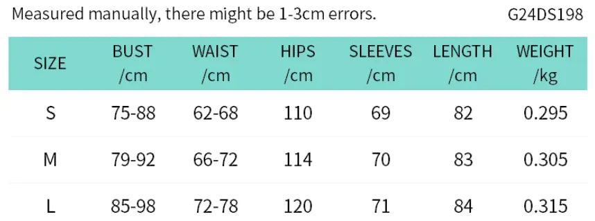 - Available in S, M, L. Please refer to the size chart for accurate measurements.