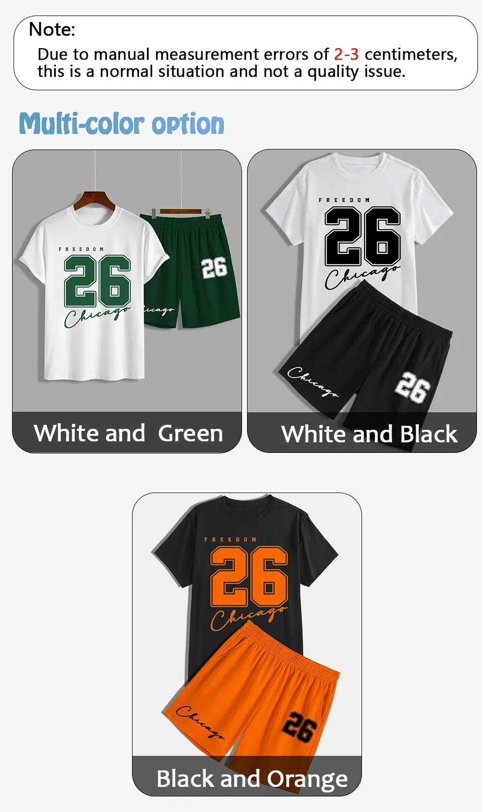 Short-sleeved shorts summer men's suit simple fitted T-shirt letter print with the same printed shorts two-piece set