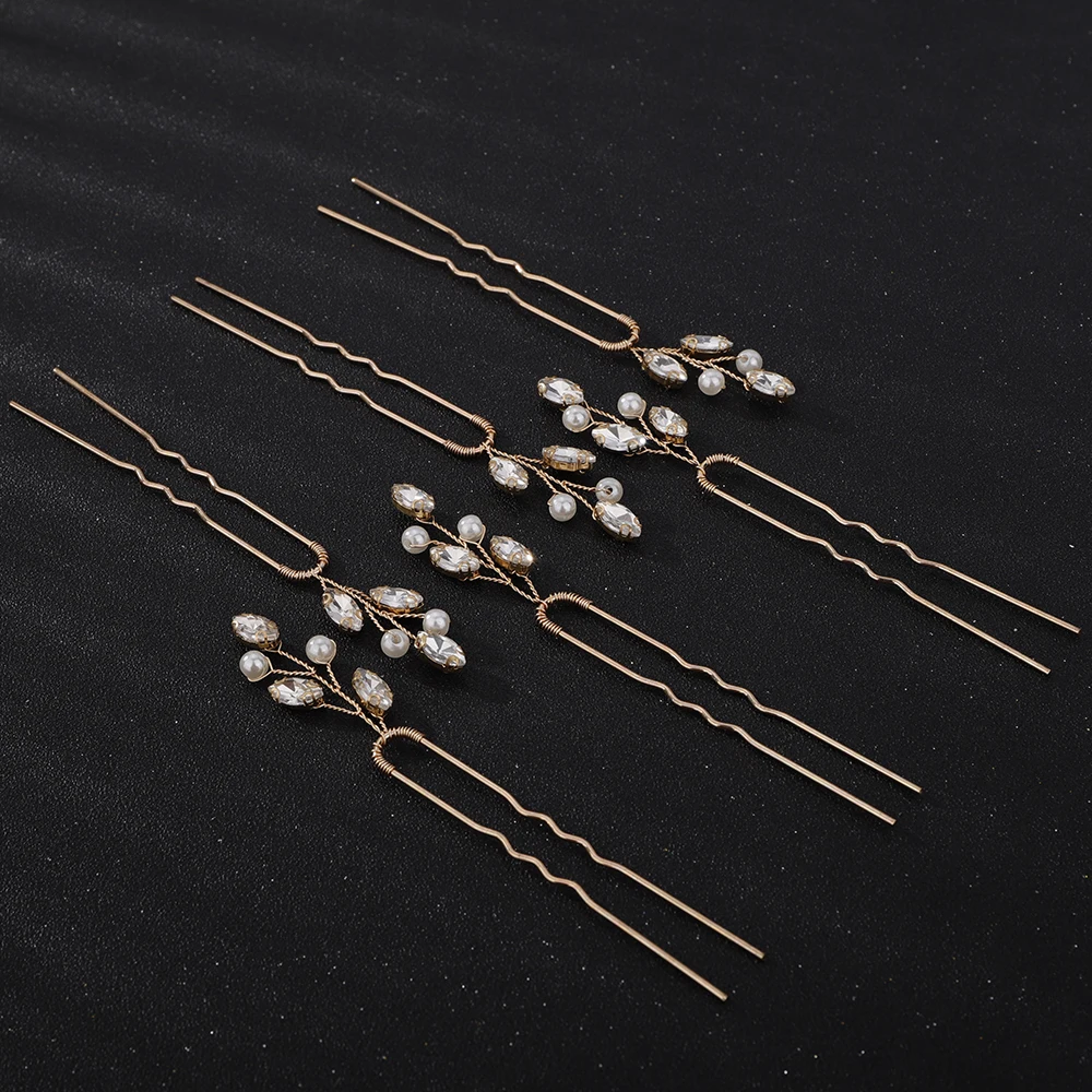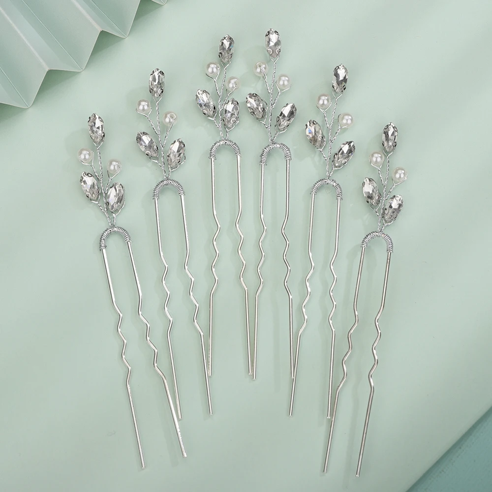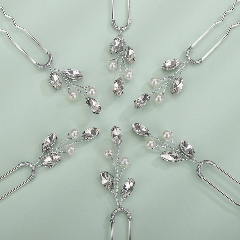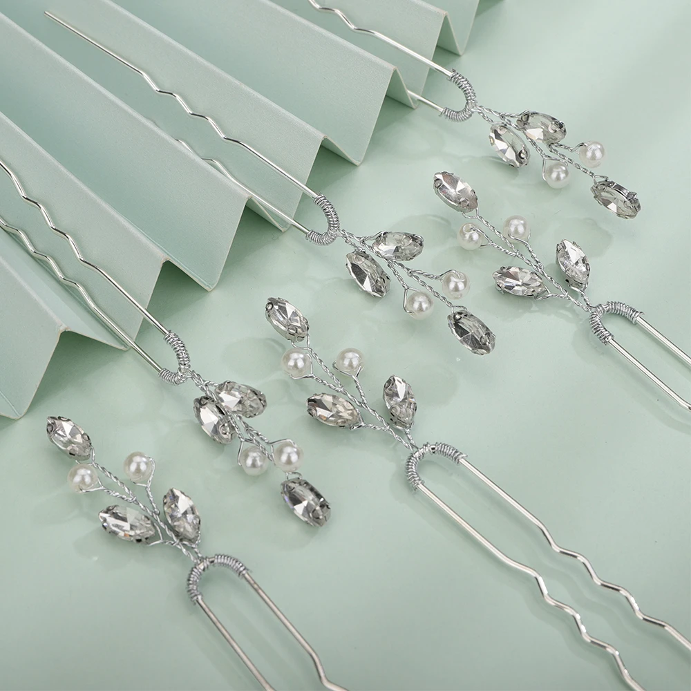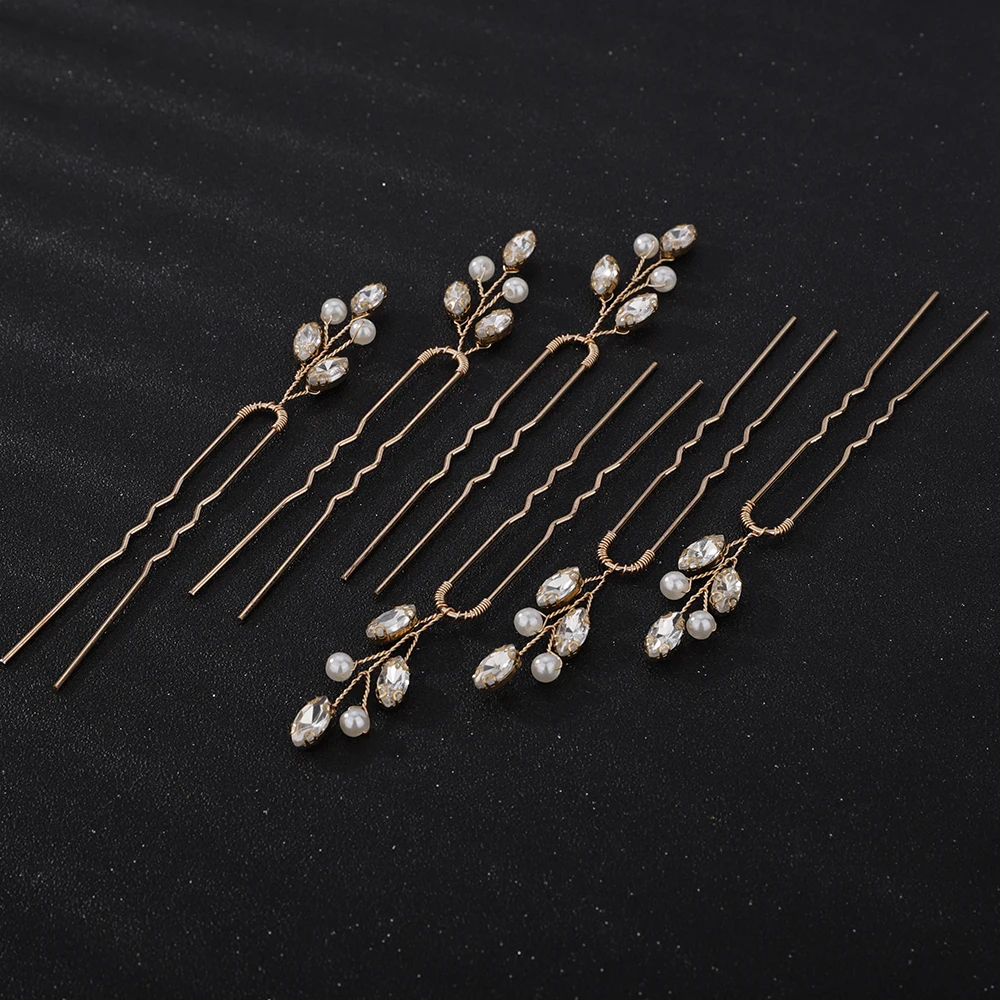 Silver Rhinestone Hairpins for Wedding Hair Accessories Women Handmade Gold Pearl Bridal Hair Pins Simple Trendy Headpiece Tiara