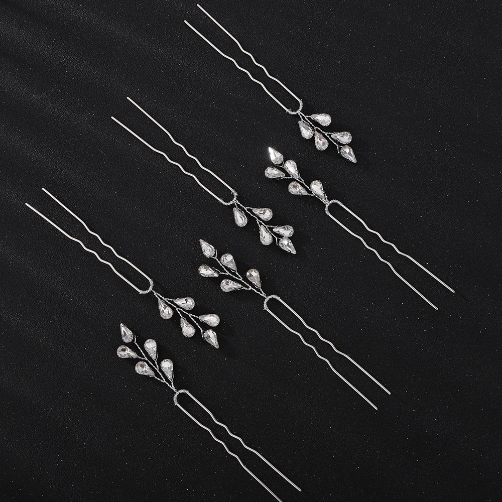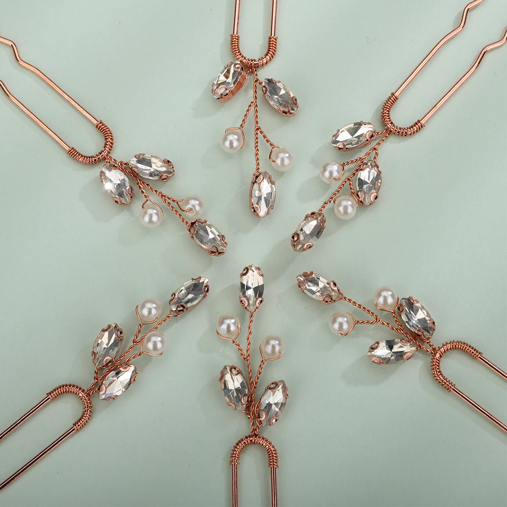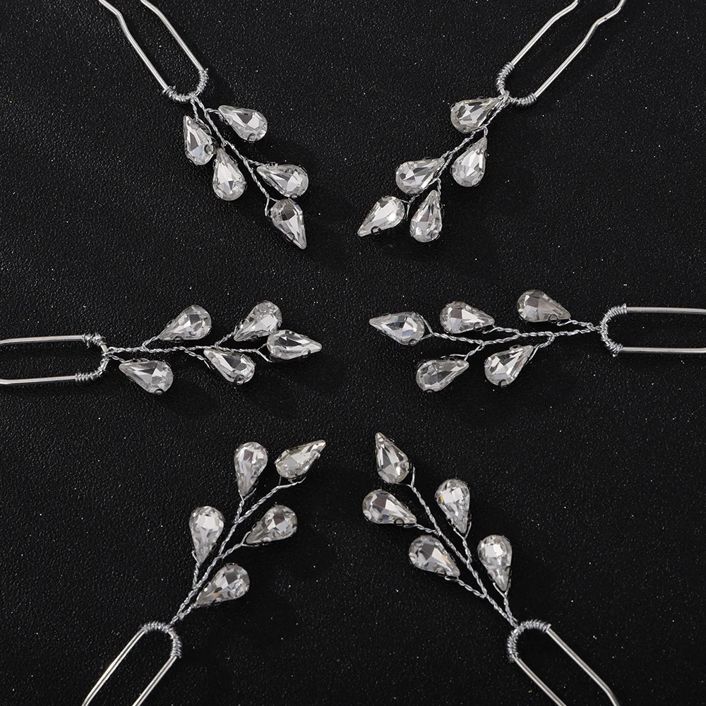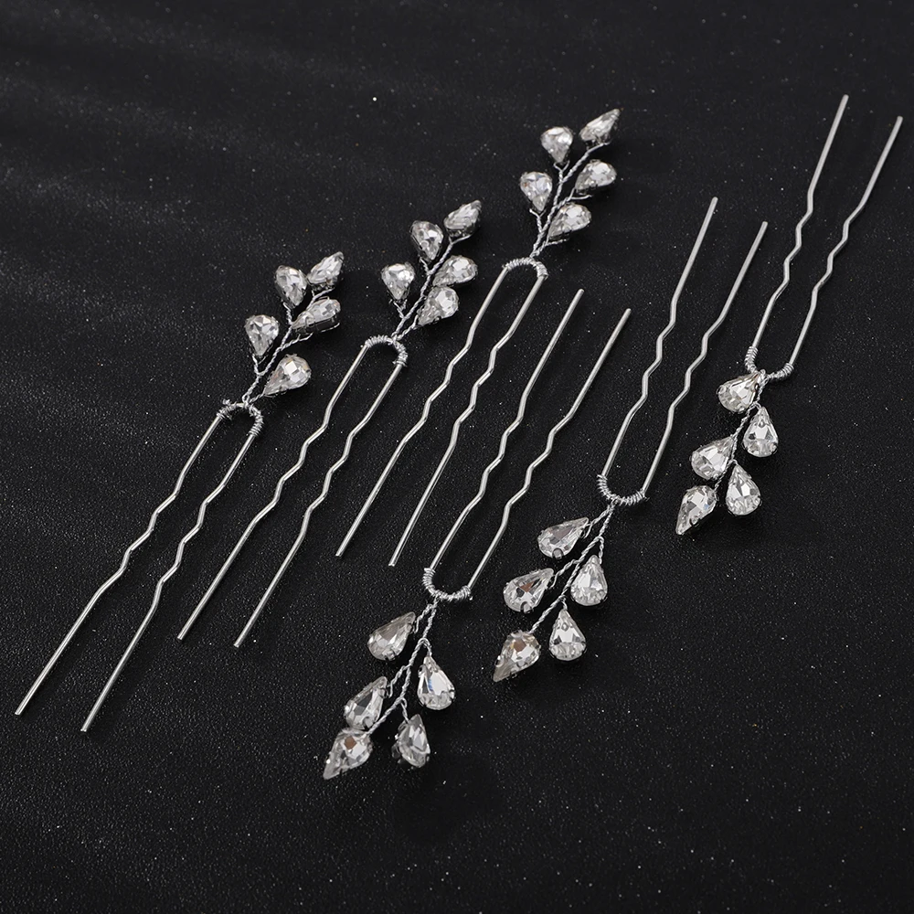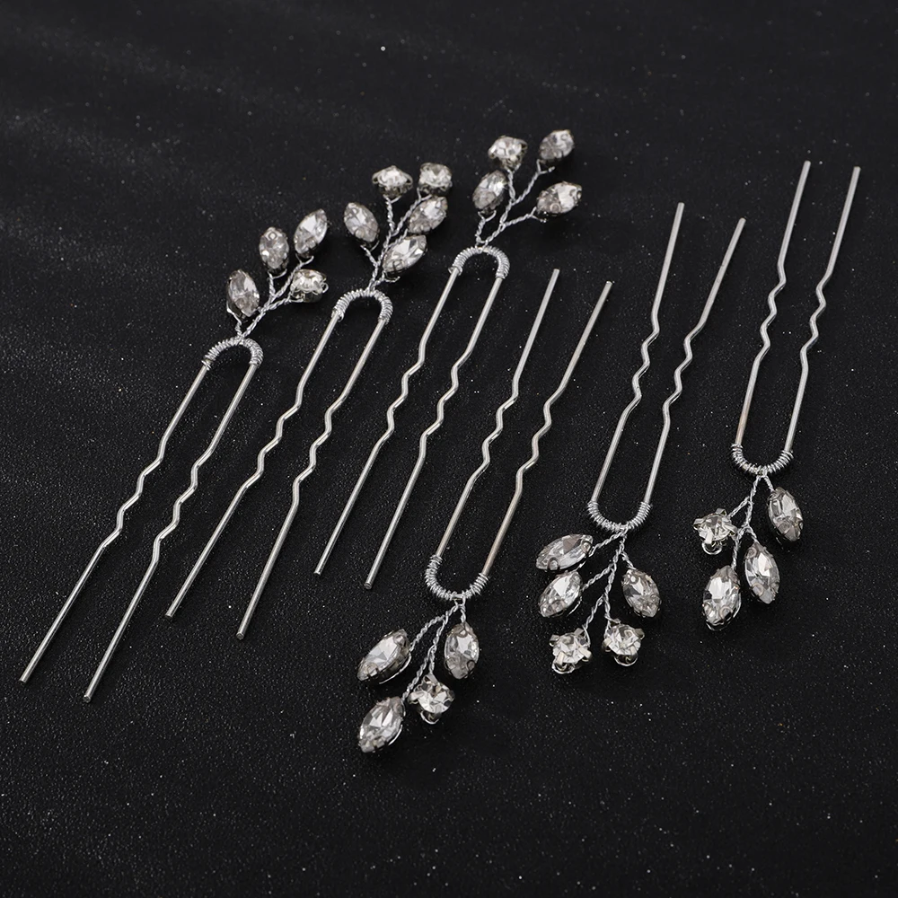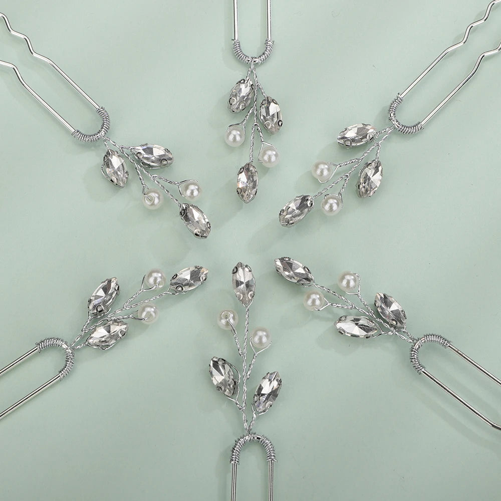 Silver Rhinestone Hairpins for Wedding Hair Accessories Women Handmade Gold Pearl Bridal Hair Pins Simple Trendy Headpiece Tiara