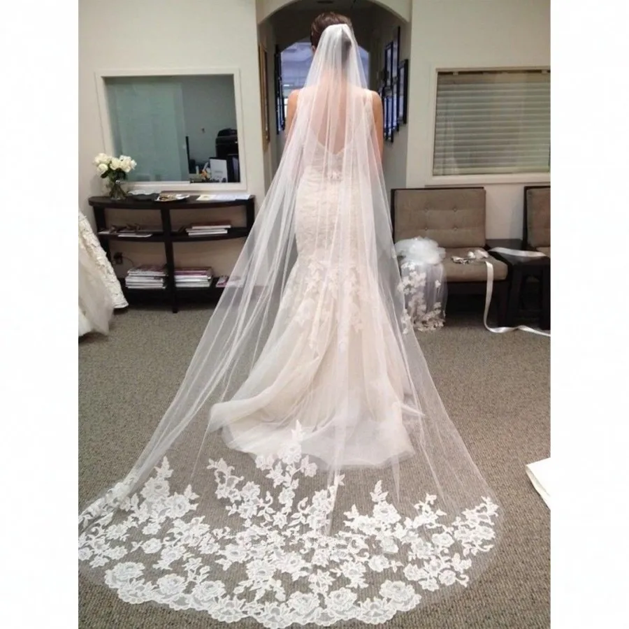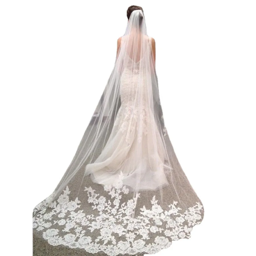 Single Layer Wedding Bridal Veil Embroidery Lace Edge Bride Supplies 3m with Comb