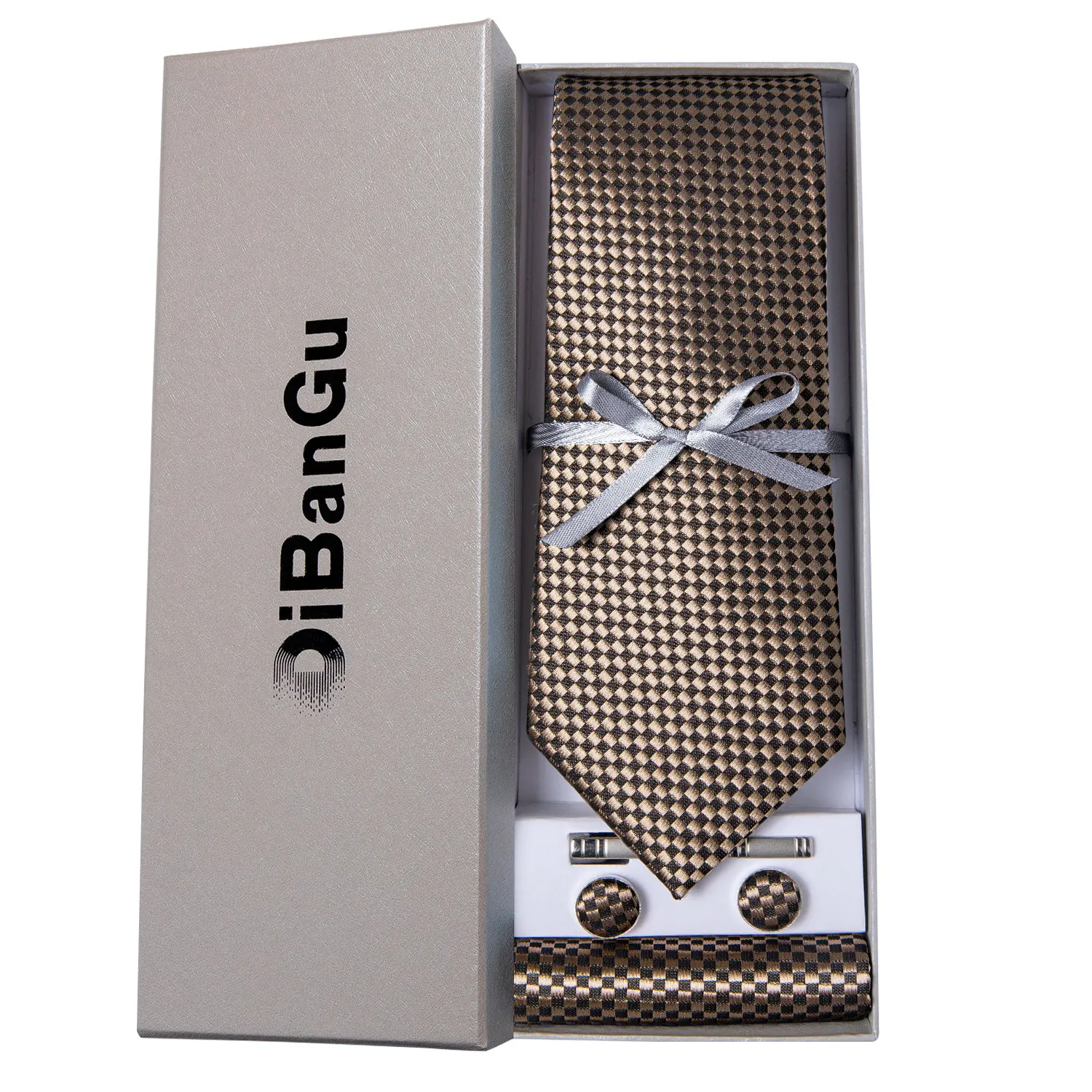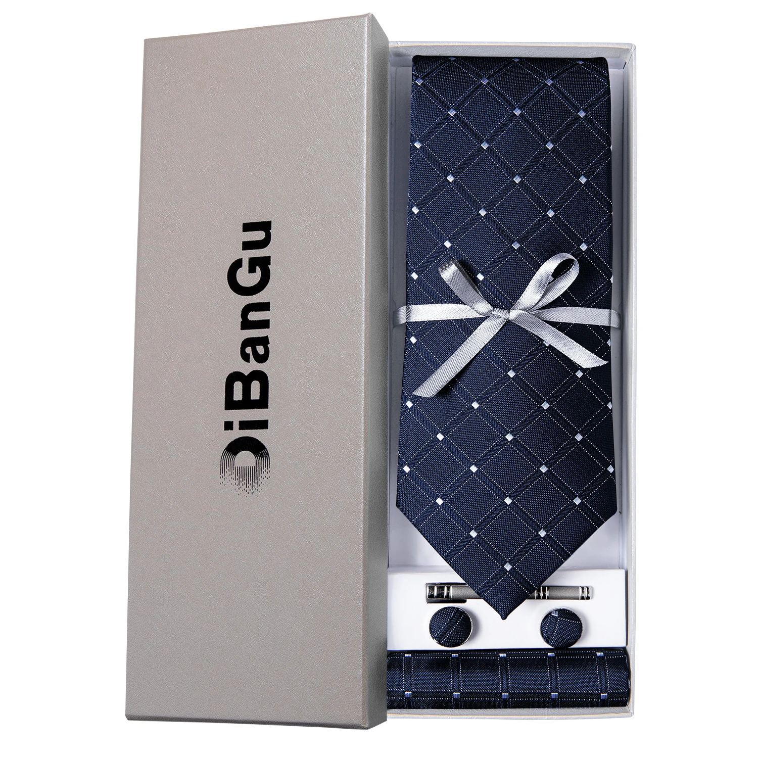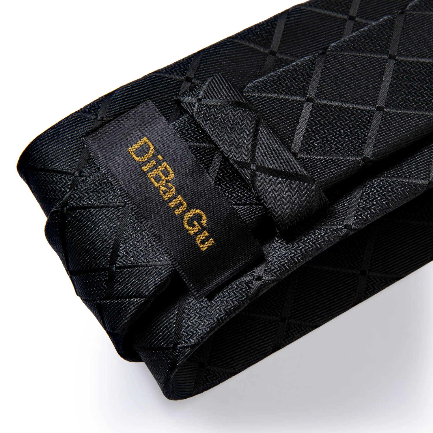 Solid Black Plaid Men's 8cm Polyester Neck Tie Handkerchief Cufflinks Set with Gift Box Tie Clip Birthday Anniversary Gift