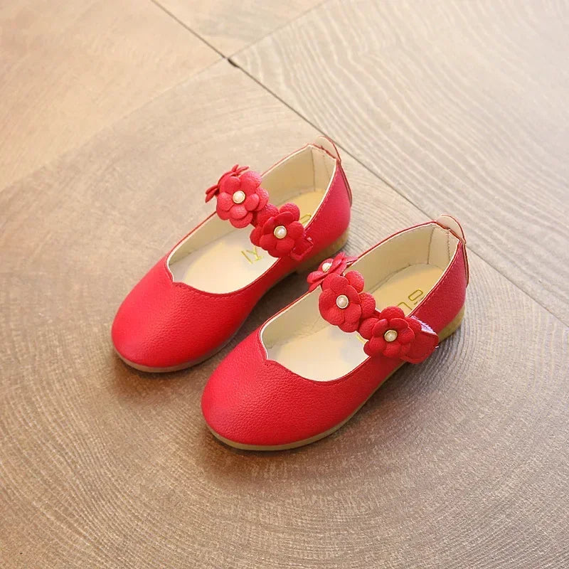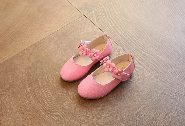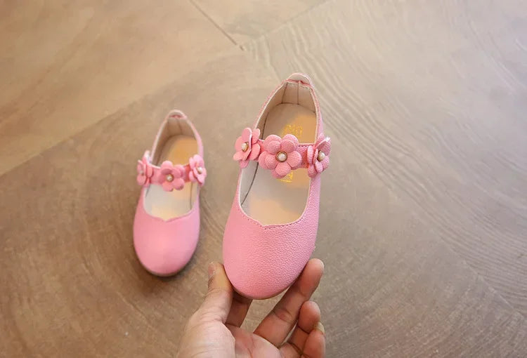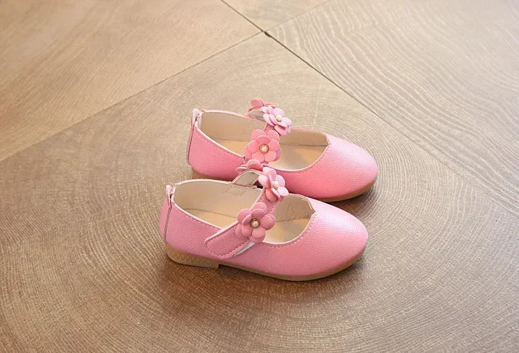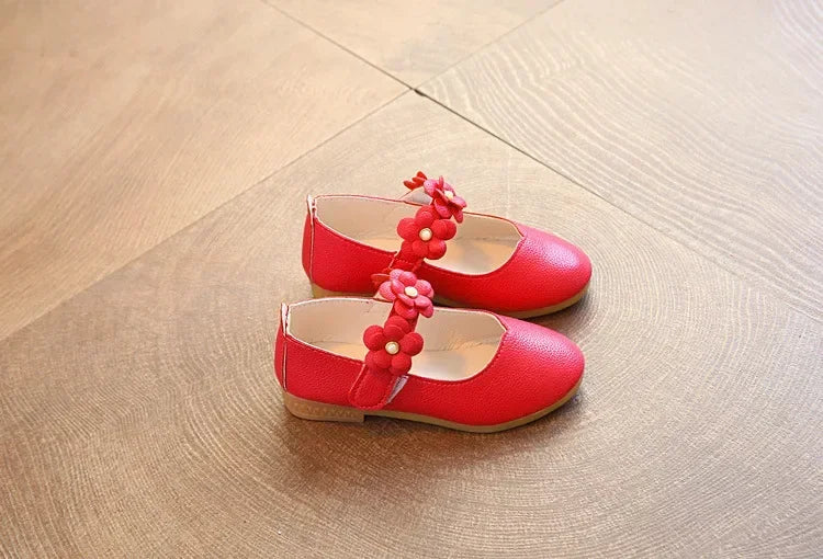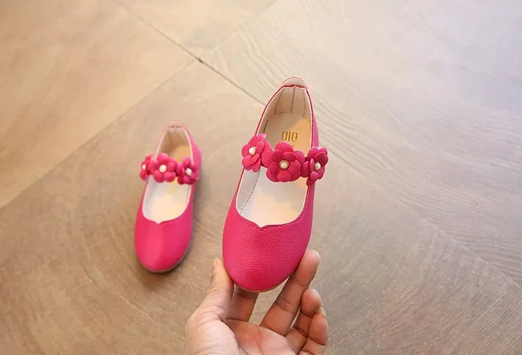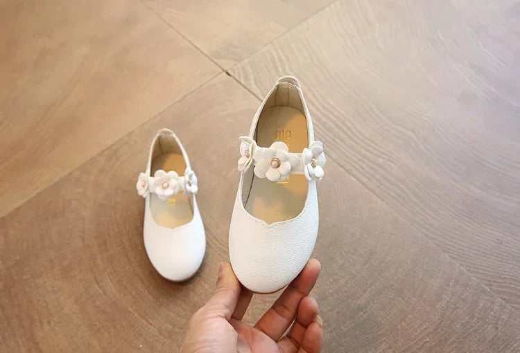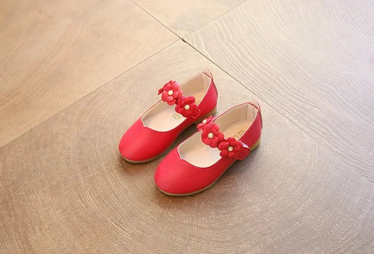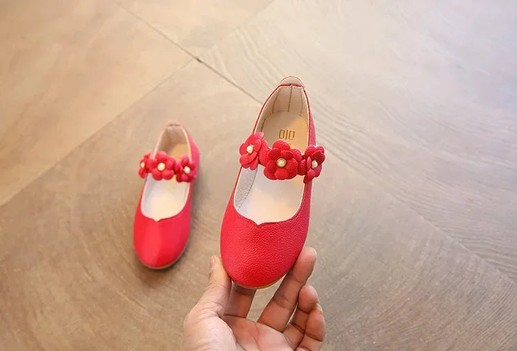 Spring and Autumn New Girls Leather Shoes Children Flats Princess Shoes Kids Flower Sweet for Wedding Cute Fashion Floral Flats