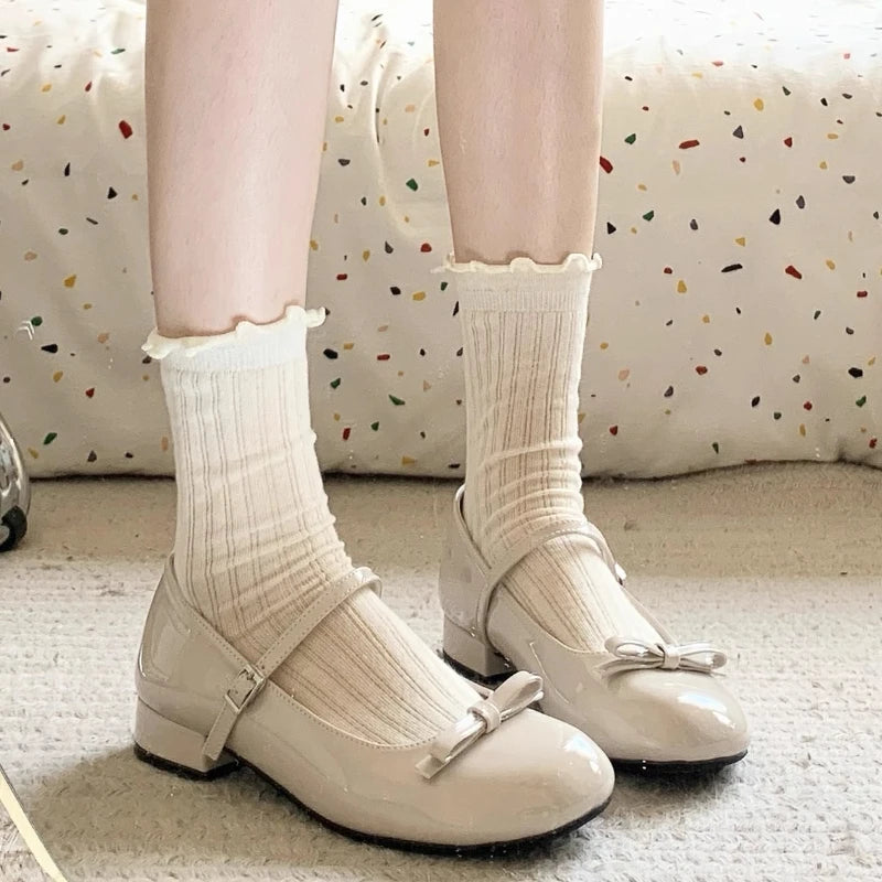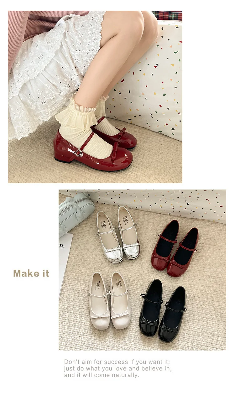 Spring Autumn Wine Red Mary Jane Shoes For Women Low Heel Fashion Butterfly-knot Roud Toe Female Eelgant Dress Leather Shoes