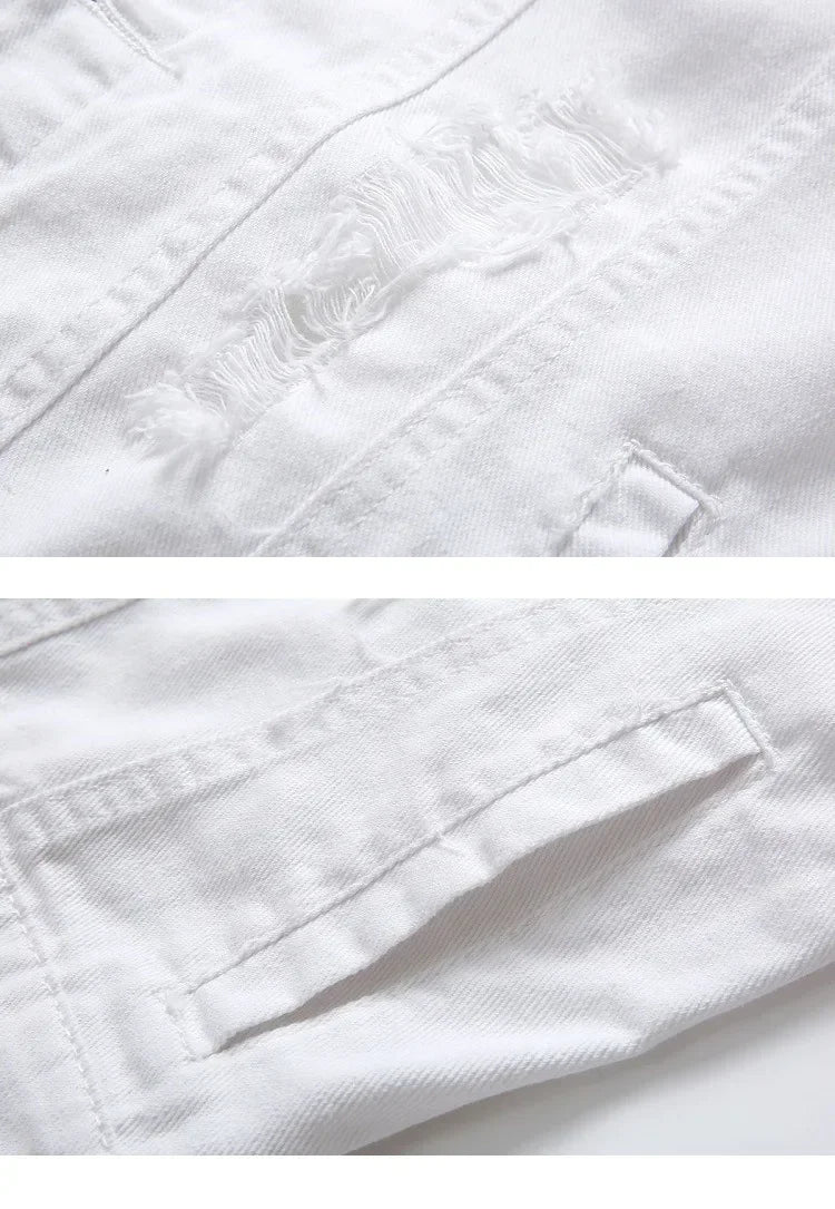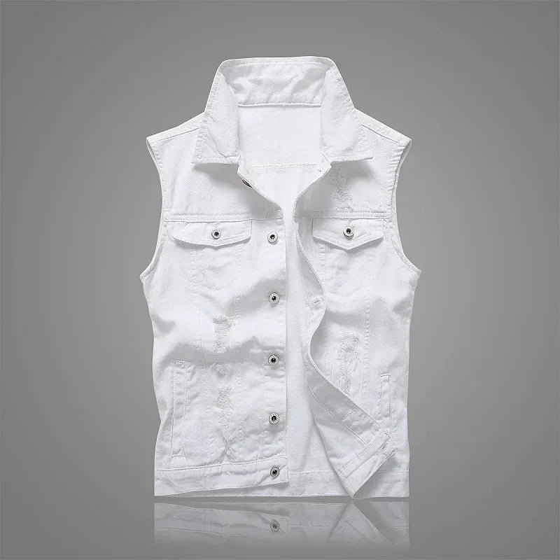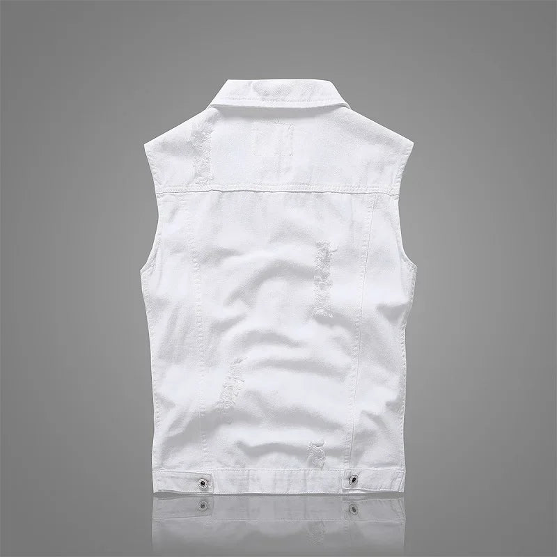 Summer Mens Ripped Denim Vest Male Tank Top Washed Jeans Waistcoat Man Retro Cowboy Hip Hop White Sleeveless Jacket