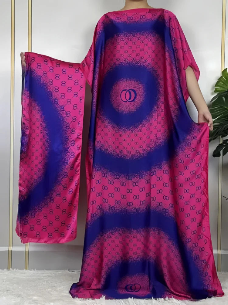 Summer New Fashion African Dresses For Women Elegant Printed Silk Muslim Lady Long Hijab Kaftan Dress Oversize Kuwait Abaya