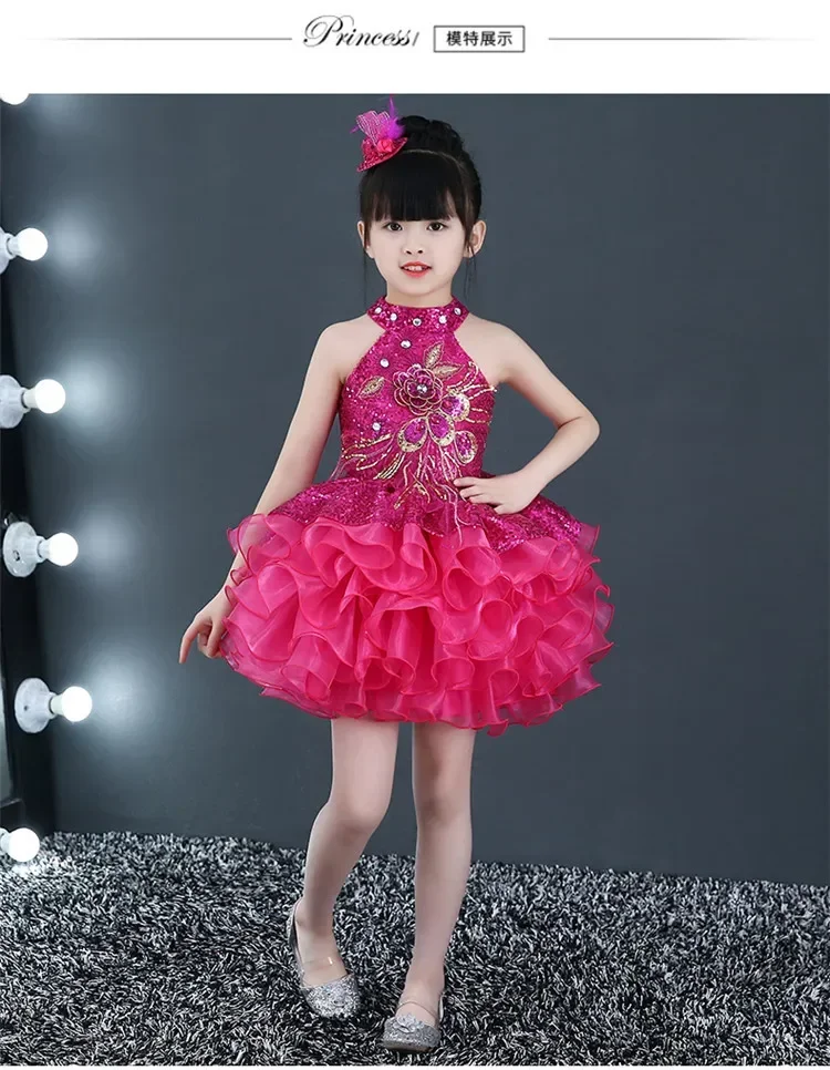 Summer Stage Princess Girls Casual Dresses Sequin Tutu Children Costume Robe Fille Party Baby Clothing Dance Kids Dress Vestidos