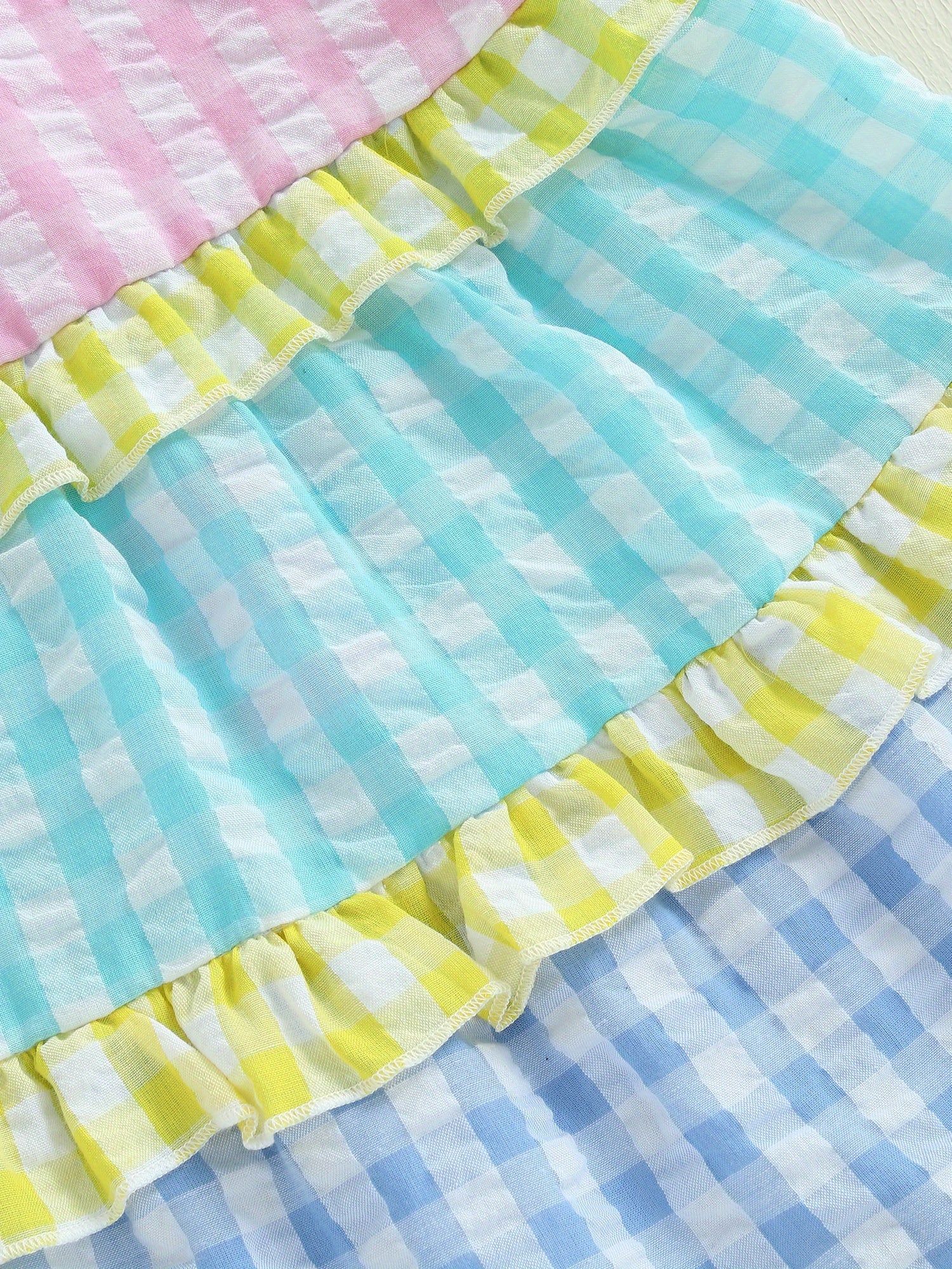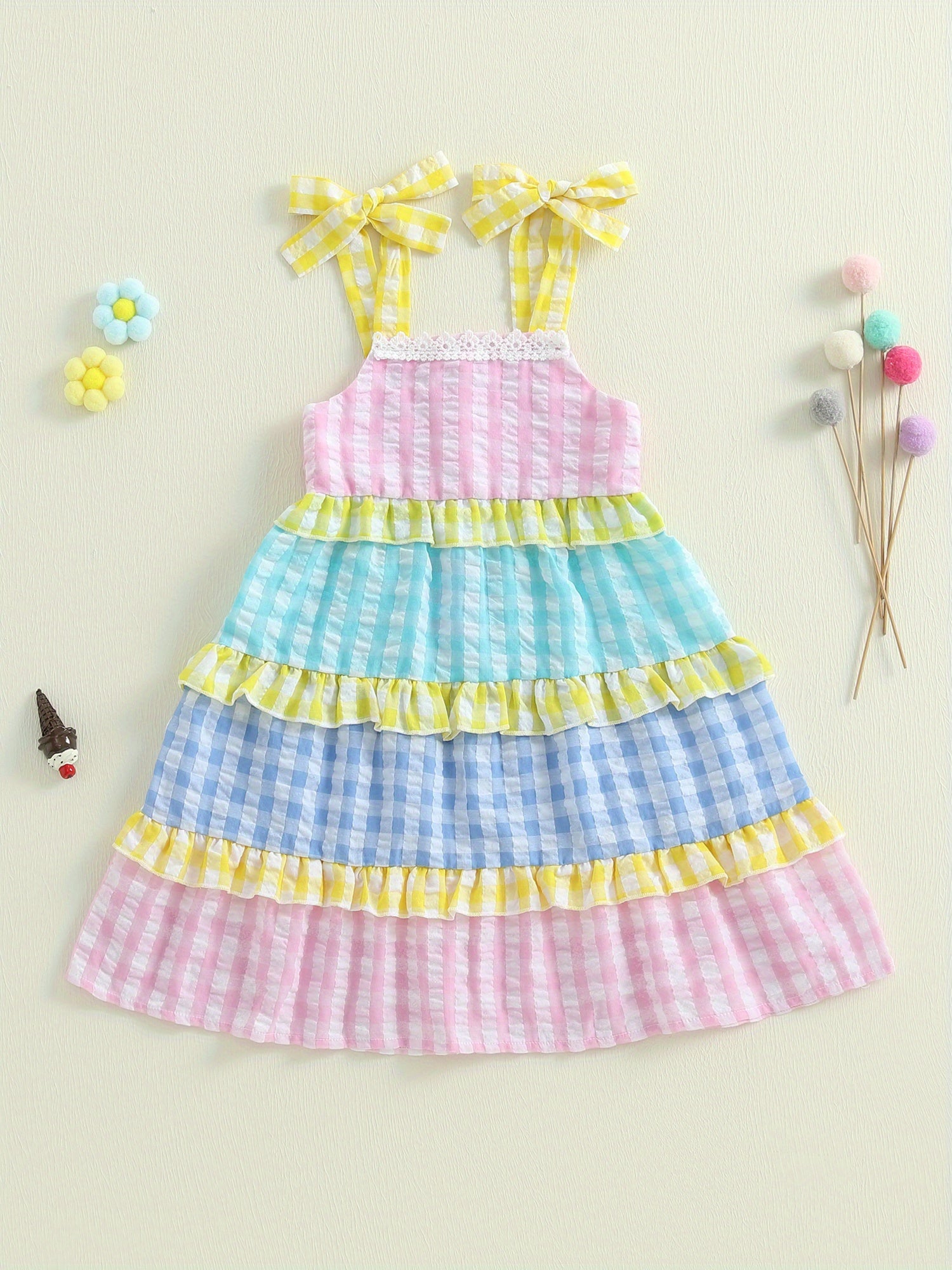 Toddler Girl Summer Dress Plaid Print Tie-up Sleeveless Tiered Ruffled A-Line Dress