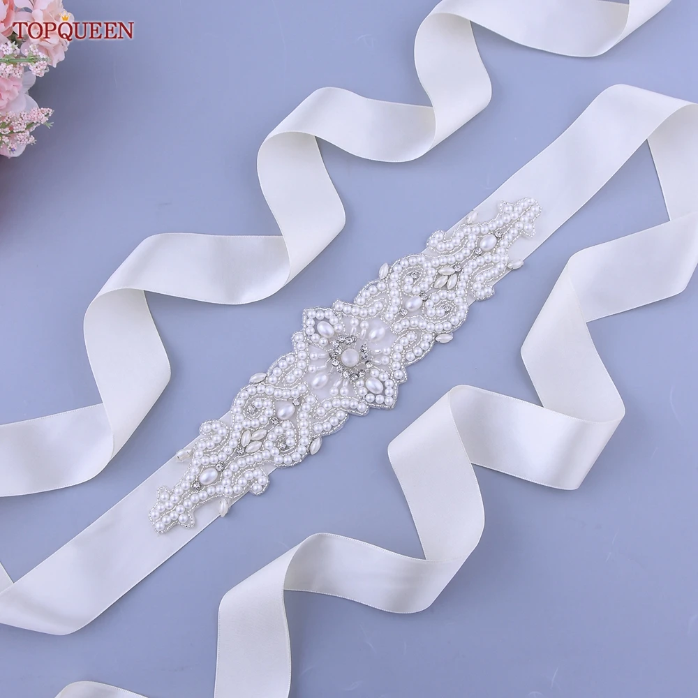 TOPQUEEN Wedding Dress Belt Luxury Full Pearl Bridal Belt Women Moroccan Decoration Satin Ribbon Belt Handmade Beaded S26A