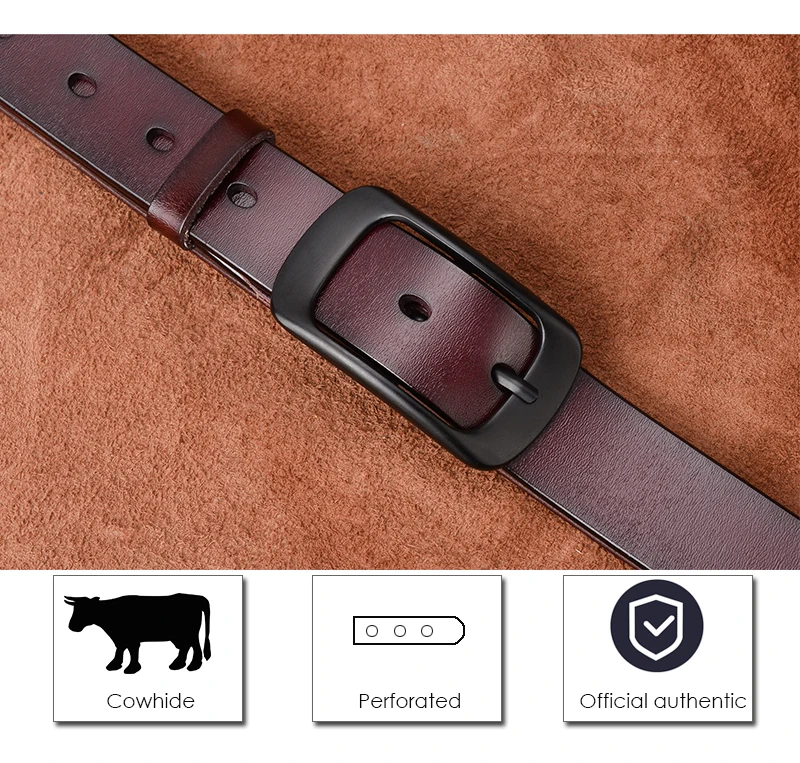 VATLTY Stylish Leather Belt for Women Matte Alloy Buckle Natural Cowhide 2.8cm Ladies Belt Jeans Brown Trousers Belt Female