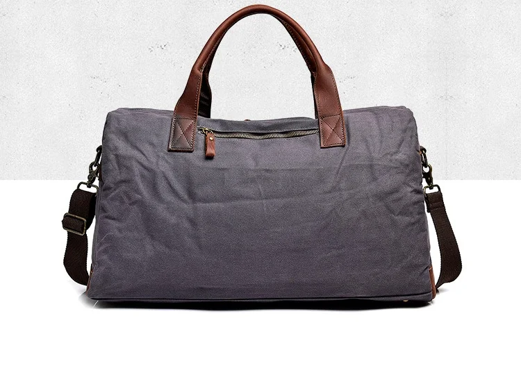 Vintage Waxed Canvas Men Luggage bag Genuine Leather Men Travel Bags Large Duffel Bags Weekend bag of trip Overnight carry on