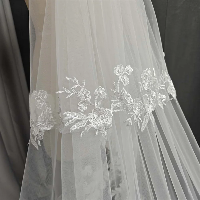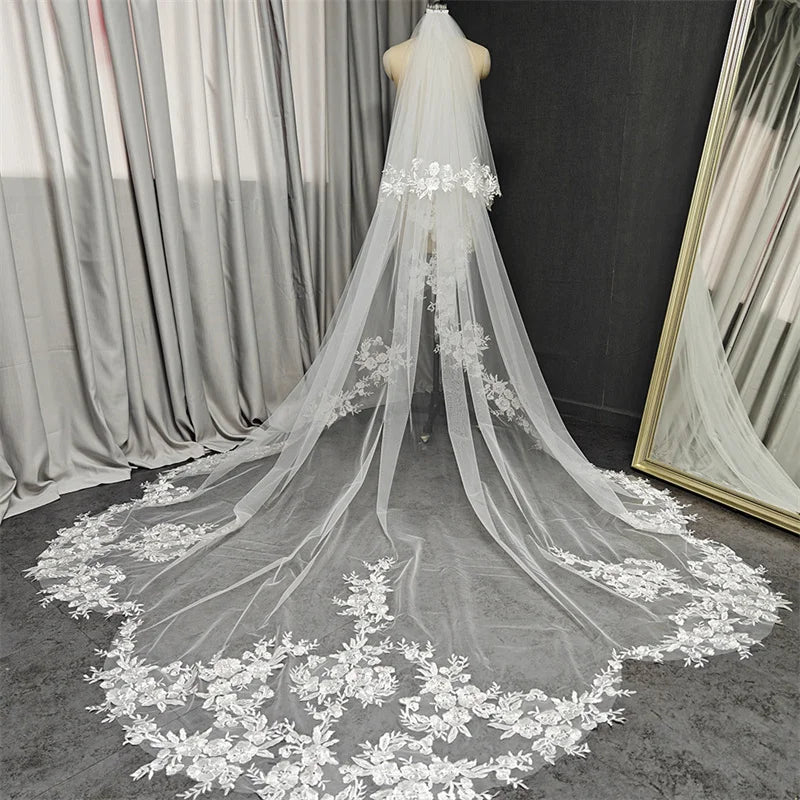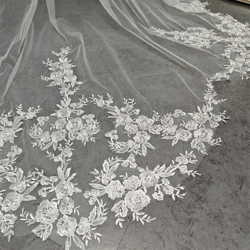 Wedding Veil with Shiny Sequins Lace Customized 2 Tiers 3 Meters Long Bridal Veil with Comb Real Photos Veil Wedding Accessories