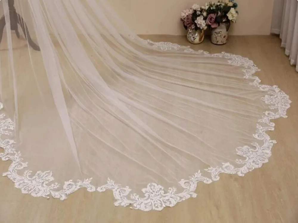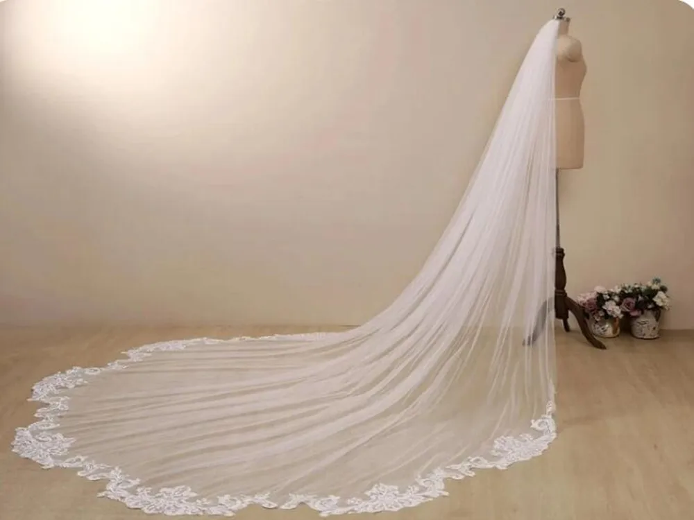White Ivory 3M 4M 5M Lace Wedding Veil with Cathedral Long Bridal Veils Wedding Accessories velos de novia voile de mariée