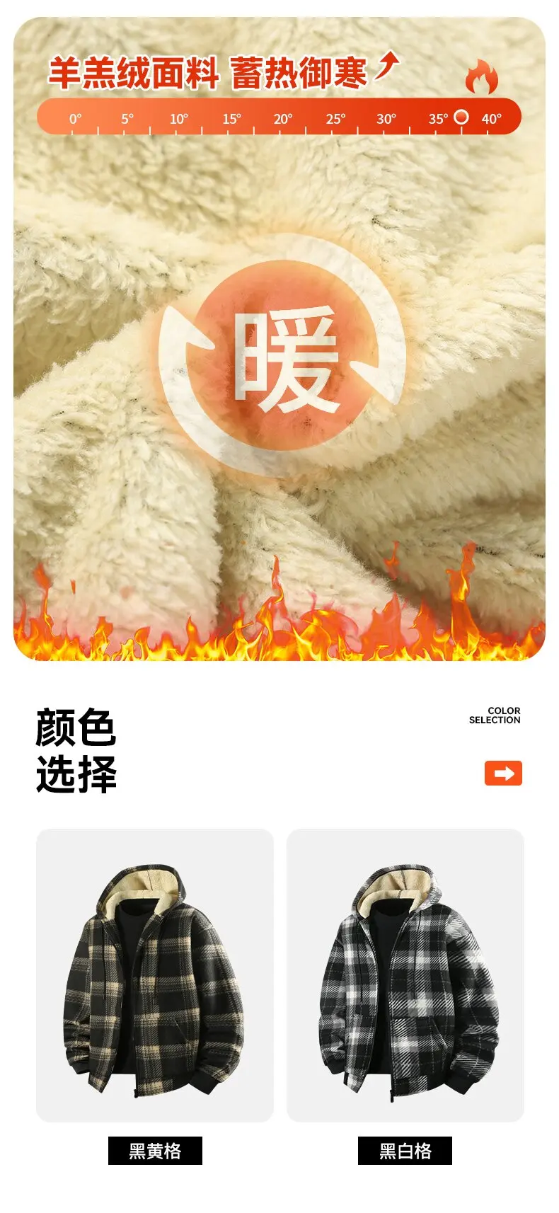 Winter Fashionable Trendy Grid Thickened Warm Lamb Fleece Jacket for Men's Casual Loose Sports Large Size High Quality Jacket