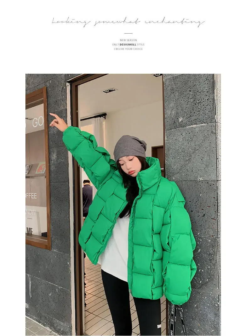 Winter Jackets for Women 2025 Thick Warm Loose Fashion Quilted Jacket Women Interchange Design High Street Green Winter Coat