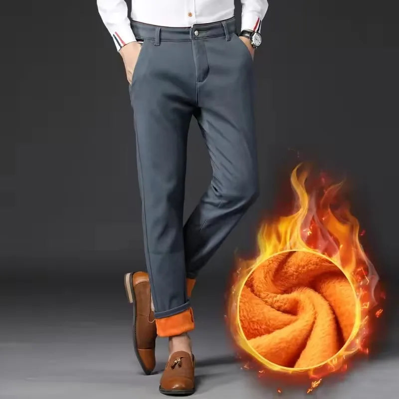 Winter Men Korean Fashion Straight Leg Pants Winter Snow Warm Thermal Thicken Casual Pants New Fleece Slim Fit Business Trousers