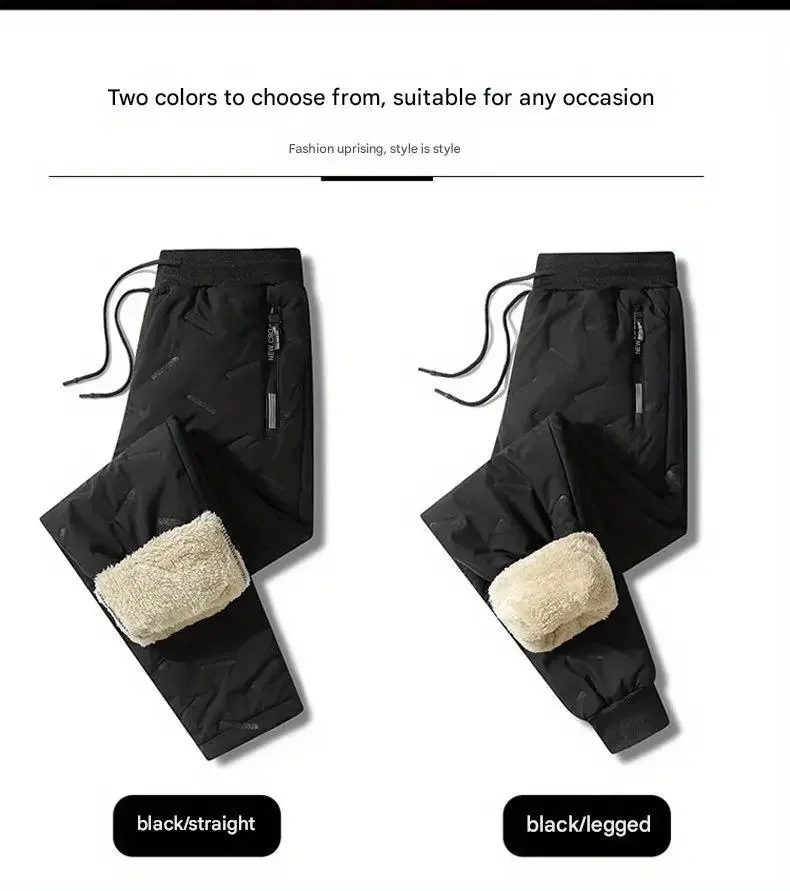 Winter Sweatwear Men Plush Thick Fleece Sweatpant Lambswool Thermal Trousers Casual Pants Waterproof Windproof Warm Cotton Pants