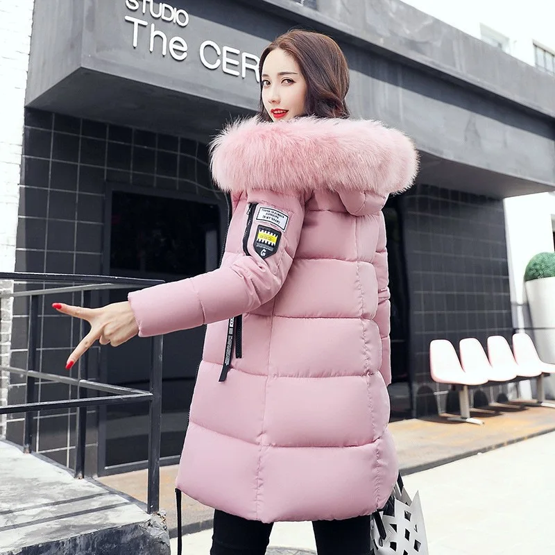 Winter Women Coat Parkas Mid-length Hooded Padded Jacket Big Fur Collar Warmth Jacket Cheap Wholesale