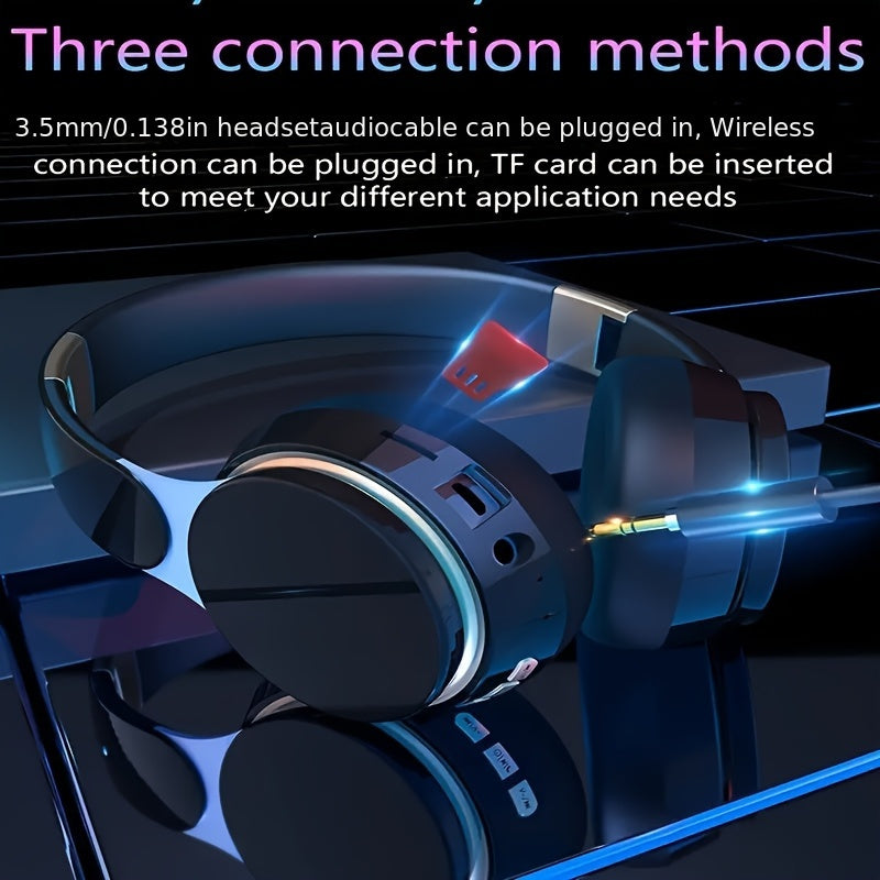 [Wireless | Heavy Bass] Wireless 5.3 Heavy Bass Stereo Foldable Headphones | Mic, FM Radio, 3.5mm AUX Cable, Soft Ear Pads, Portable Design for Travel, Home, Office, and Calls | Elegant Sound Engineering, Metallic Accents