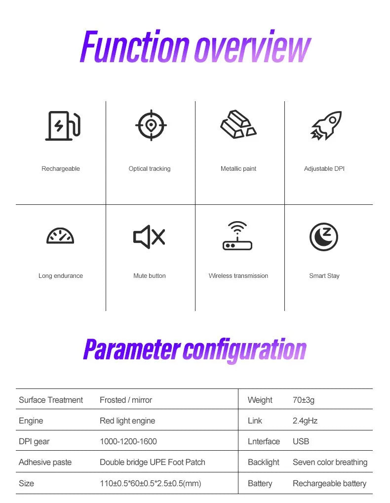 • Rechargeable Battery :No need to constantly replace batteries, simply recharge the mouse for extended use.