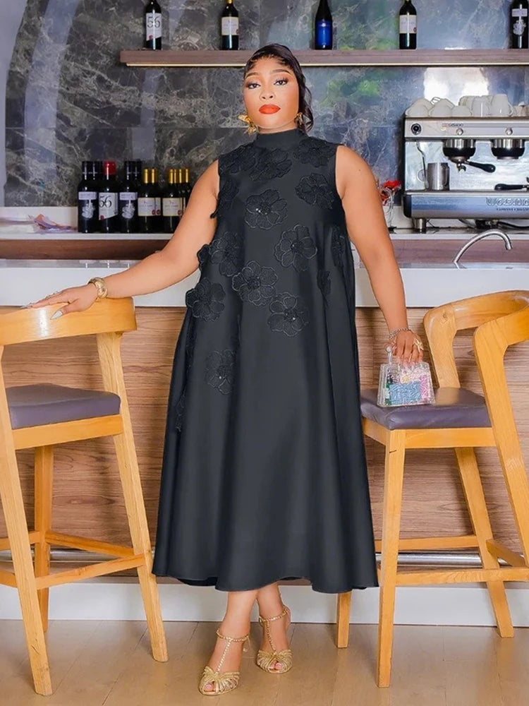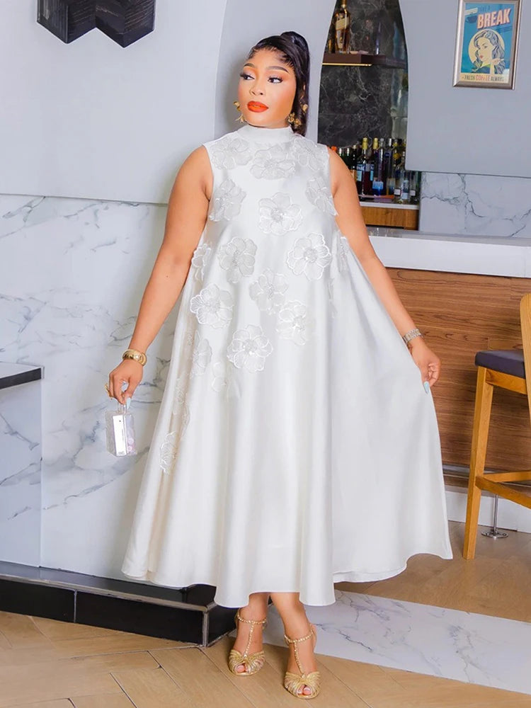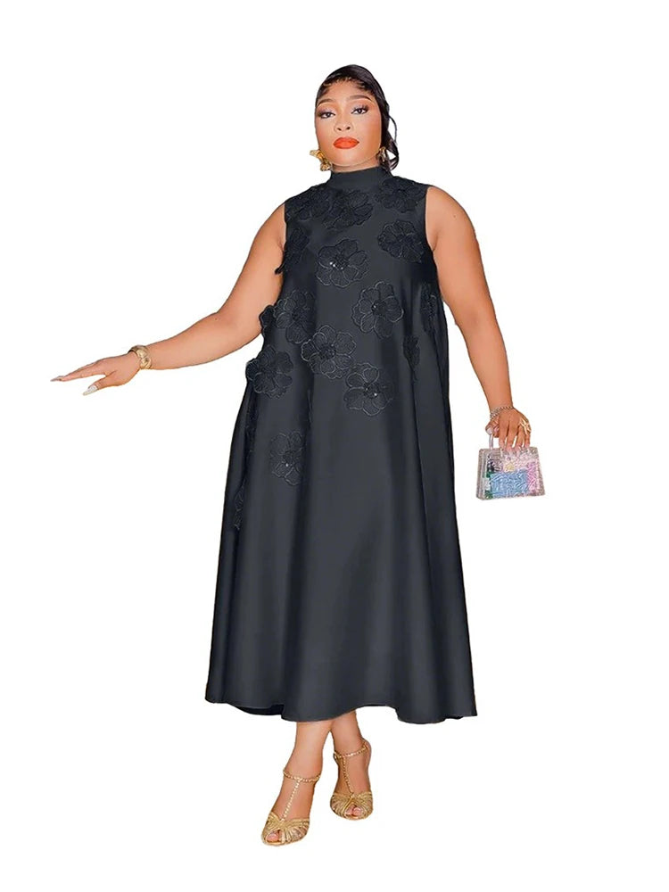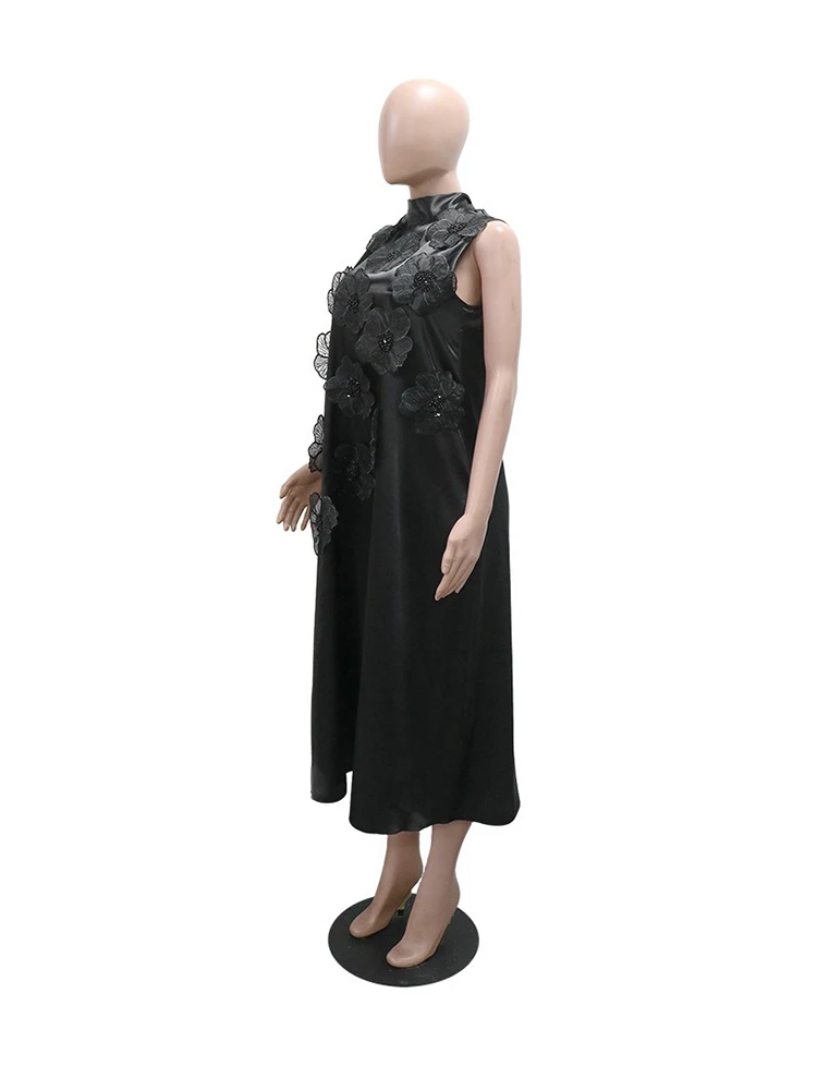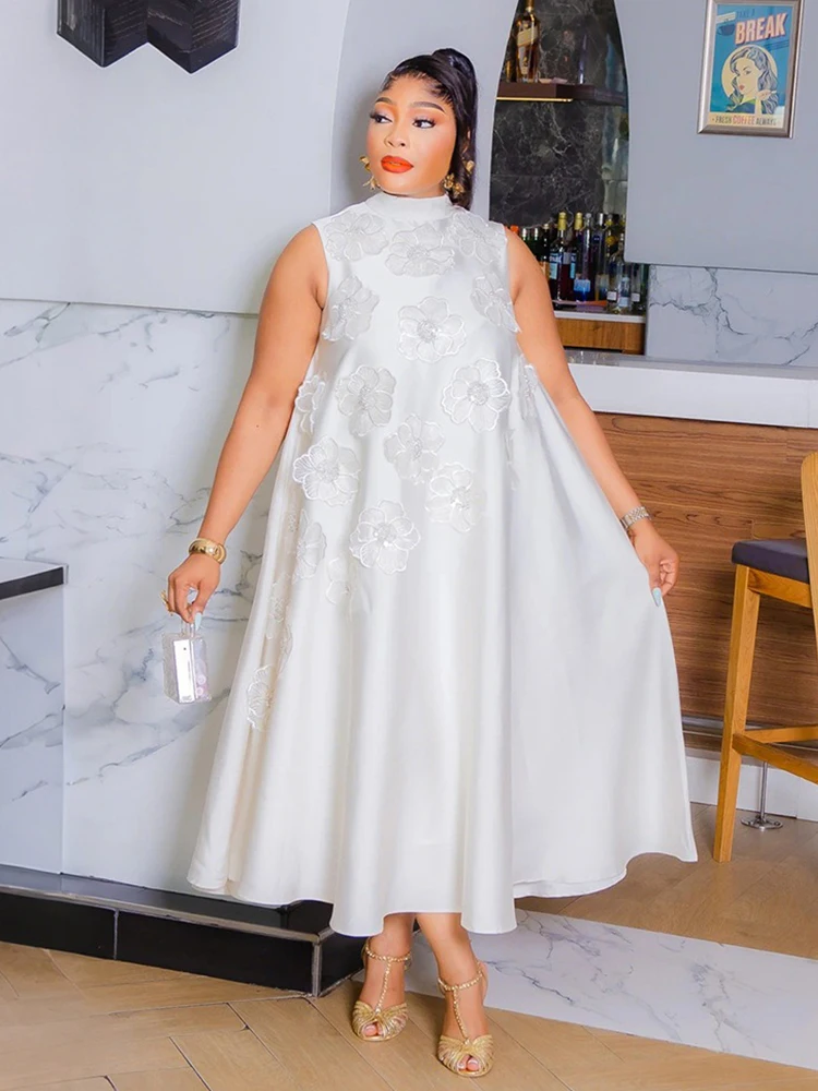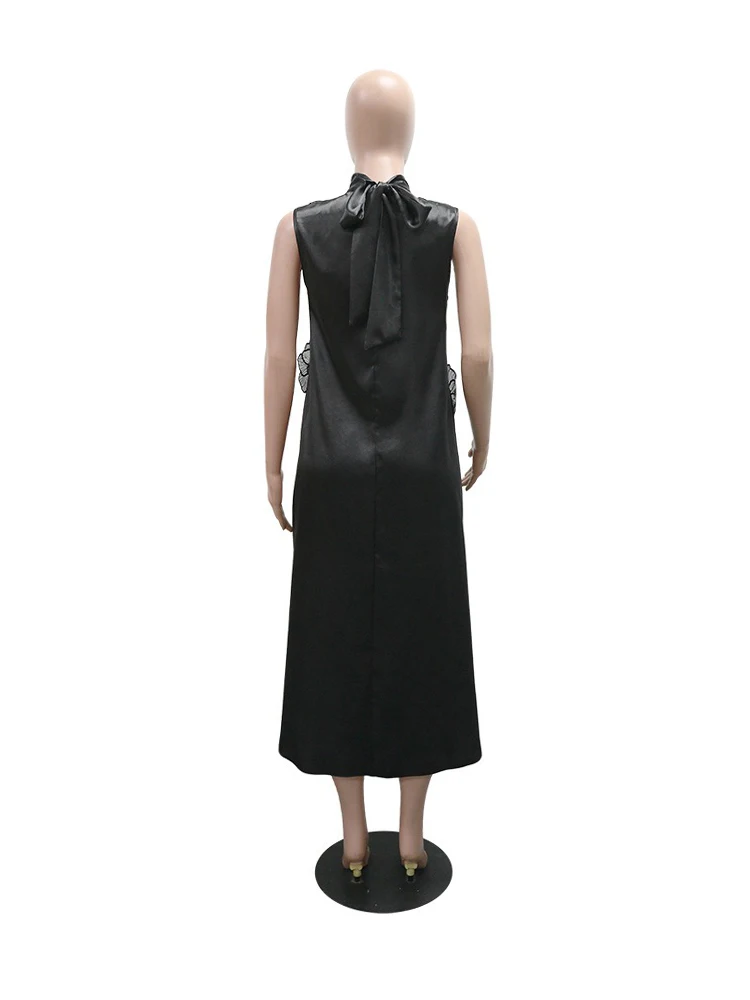 Woman African Traditional Dresses Summer Elegant Sleeveless Dress Stretchy Fake Silk Midi Dresses Luxury Wholesale Dropshipping