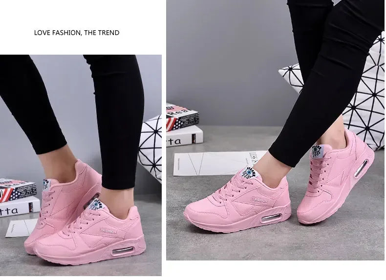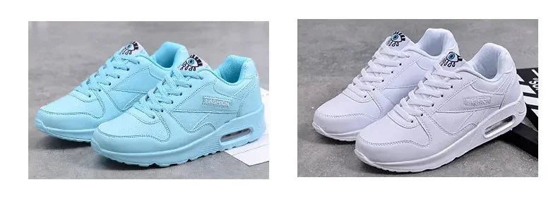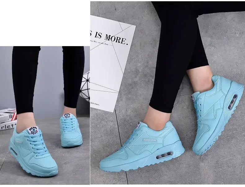 Women Fashion Sneakers Air Cushion Sports Shoes Pu Leather Blue Shoes White Pink Outdoor Walking Jogging Shoes Female Trainers