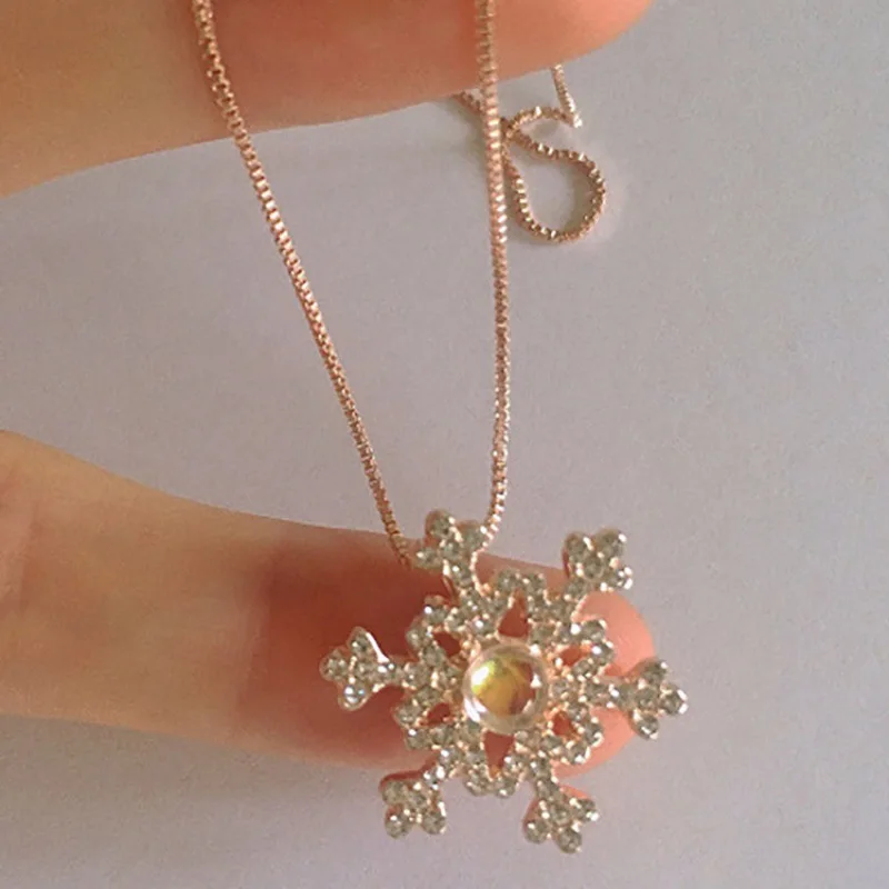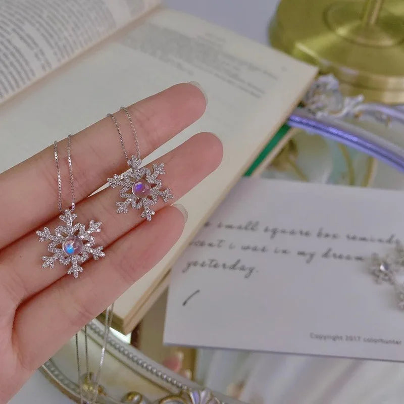 women girl famous moonstone snowflake necklace, female student chain necklace jewelry