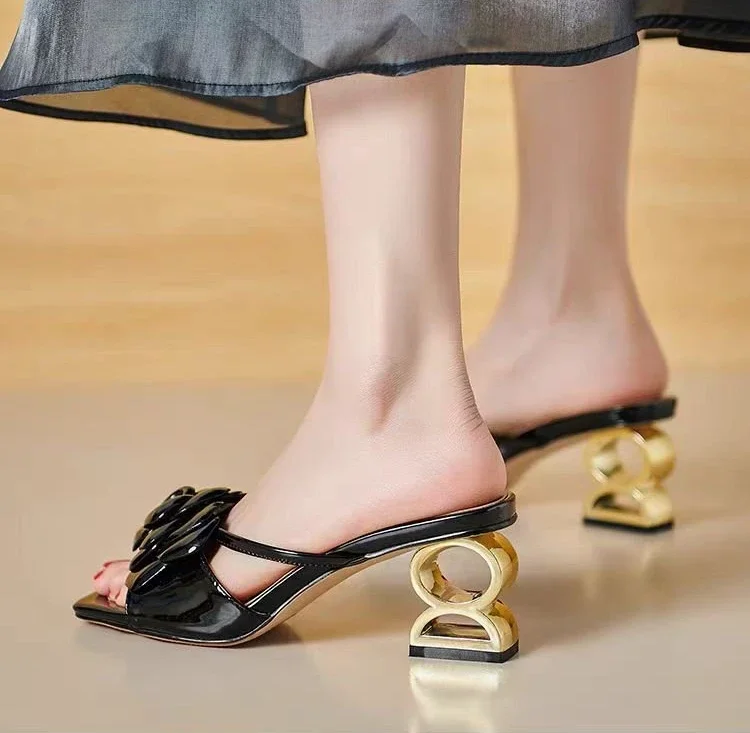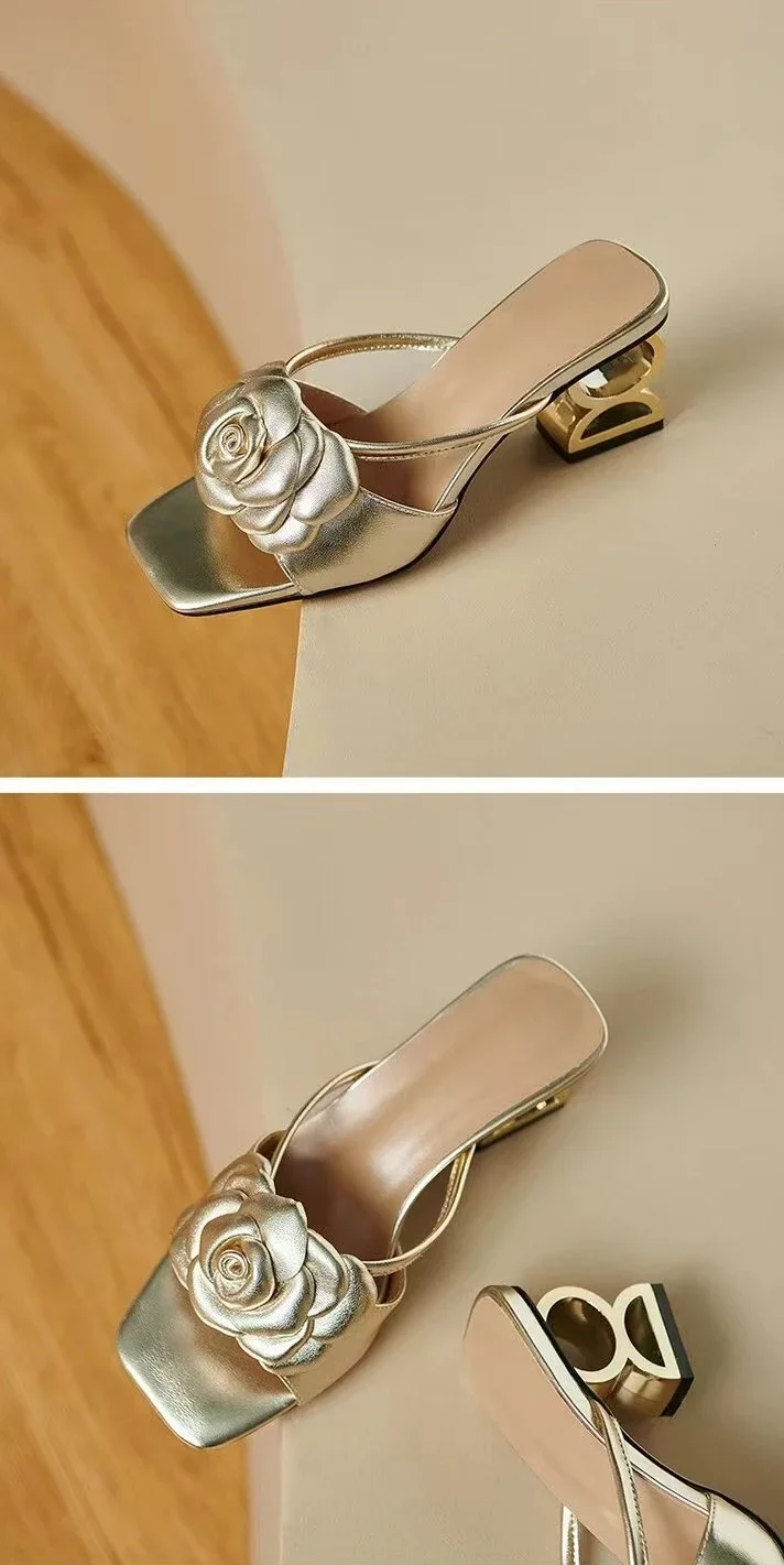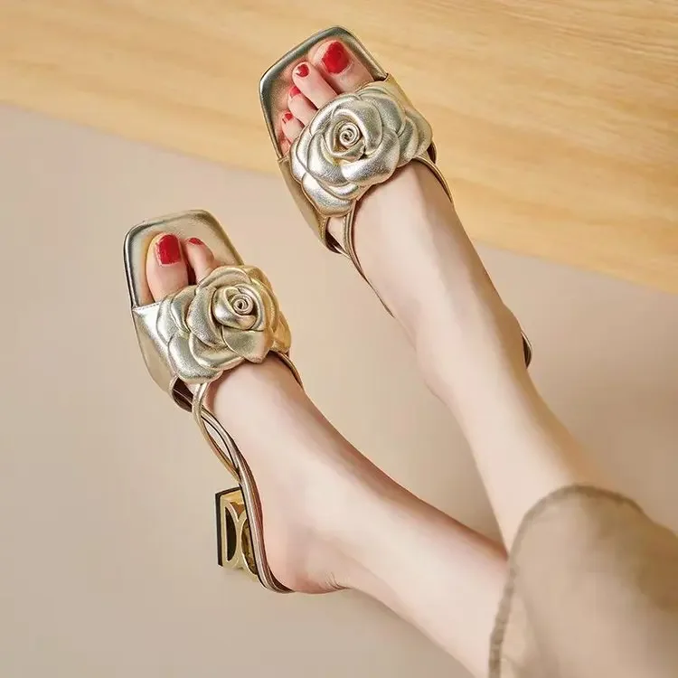 Women Shoes 2025 New Summer Big Size 34-42 Fashion Flowers Black Beige Gold Dress Party Wedding Female Sandals Shoes