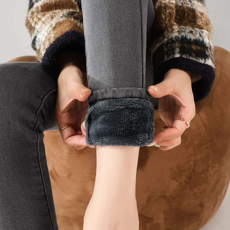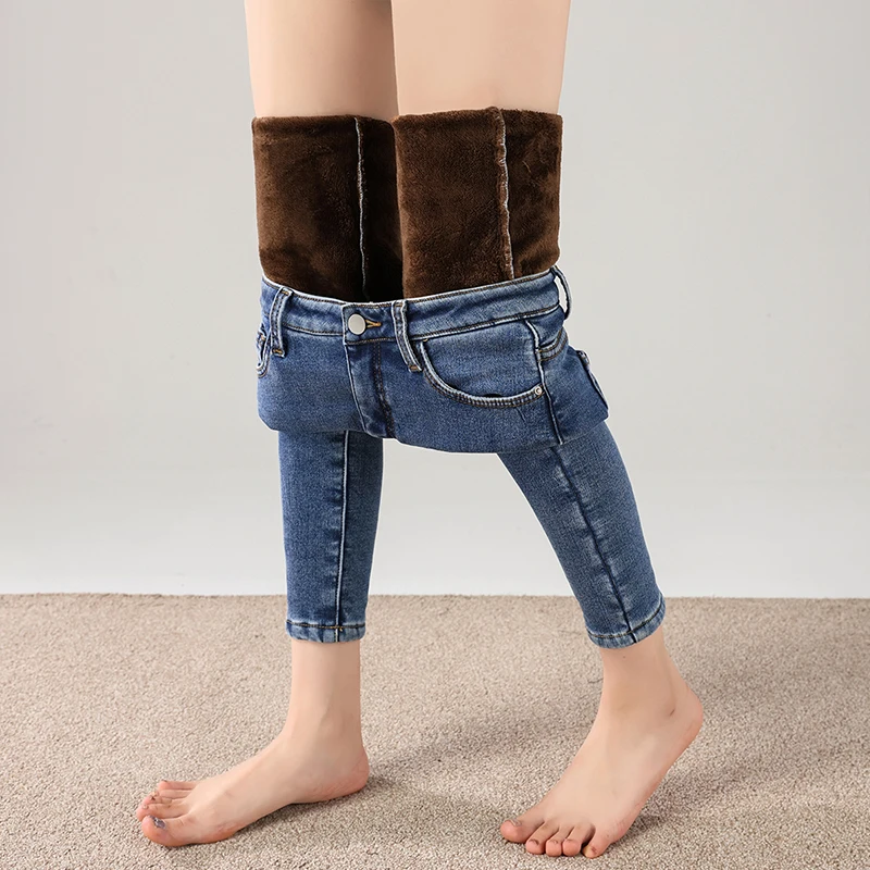 Women Thermal Jeans Winter Snow Warm Thickened Fleece Stretch Skinny Pencil Pants Fashion Korean Slim Fit Velvet Plush Pants
