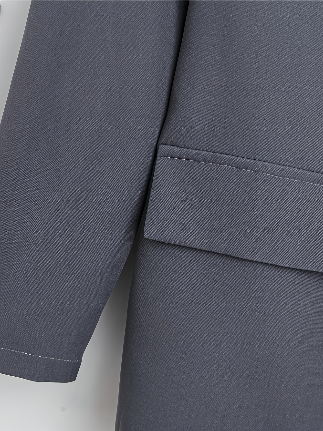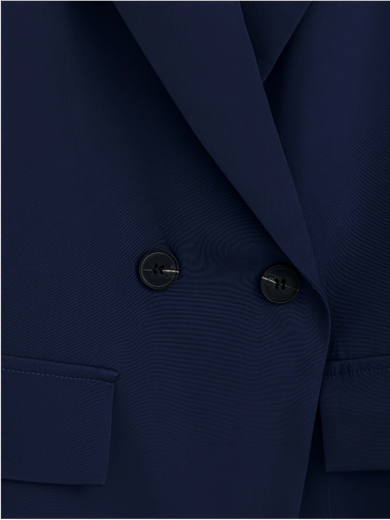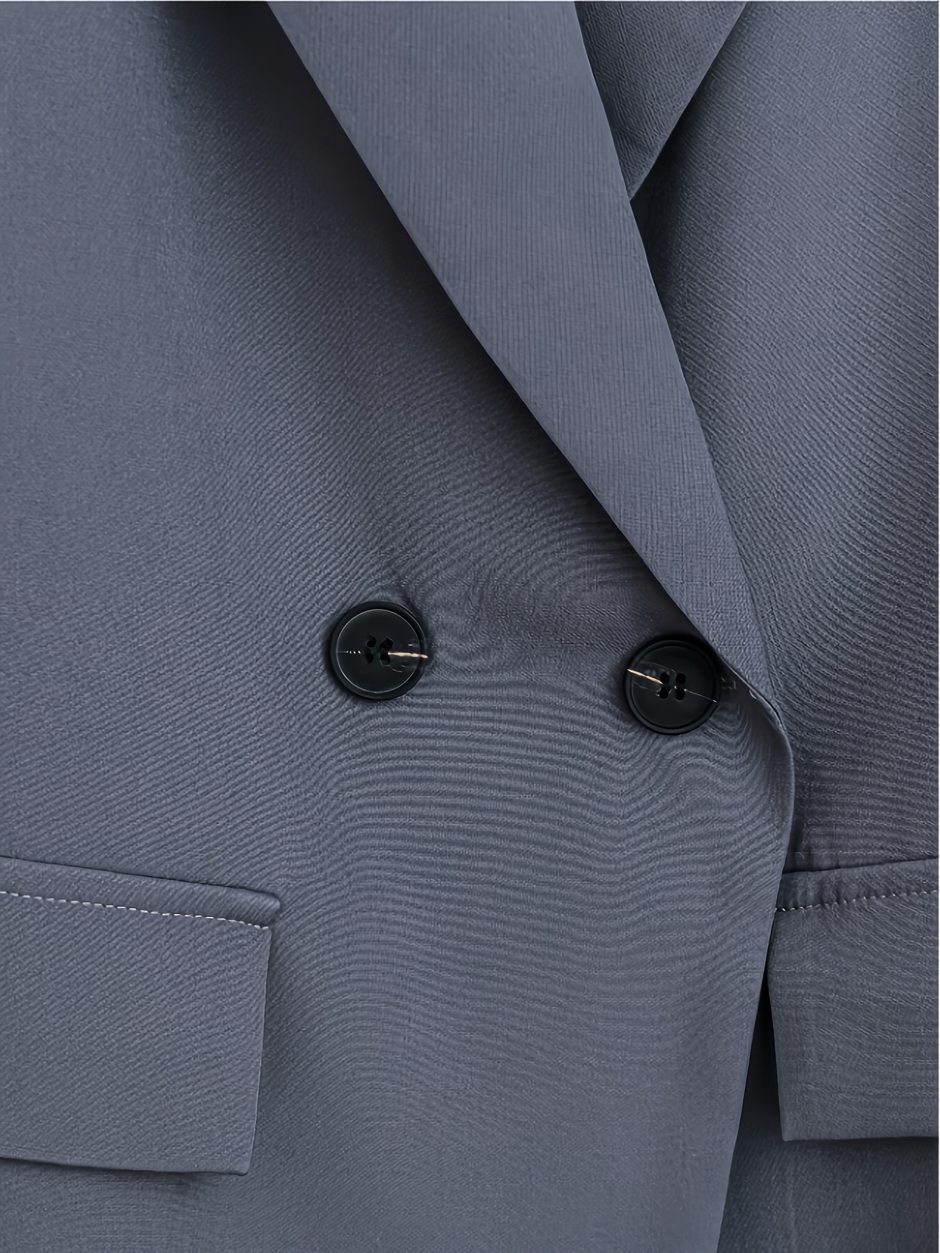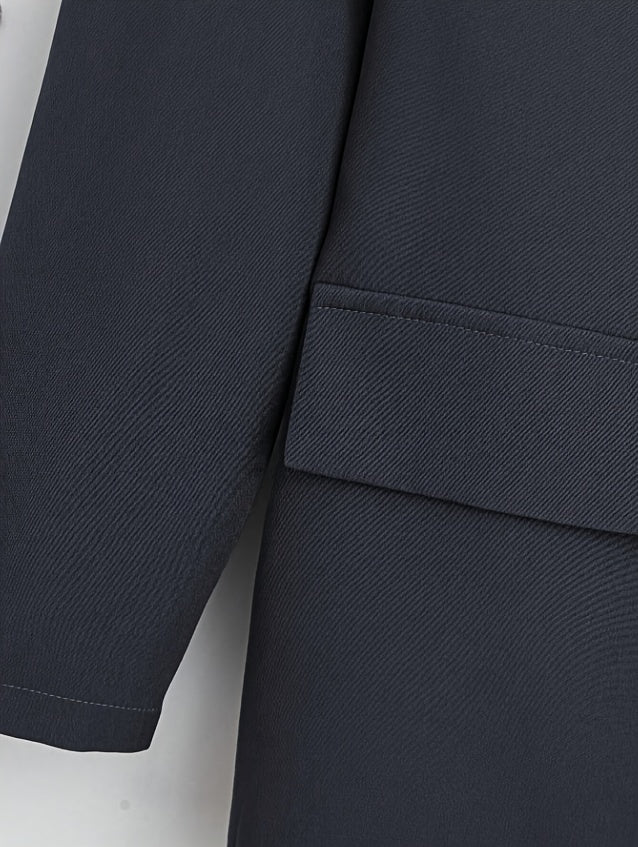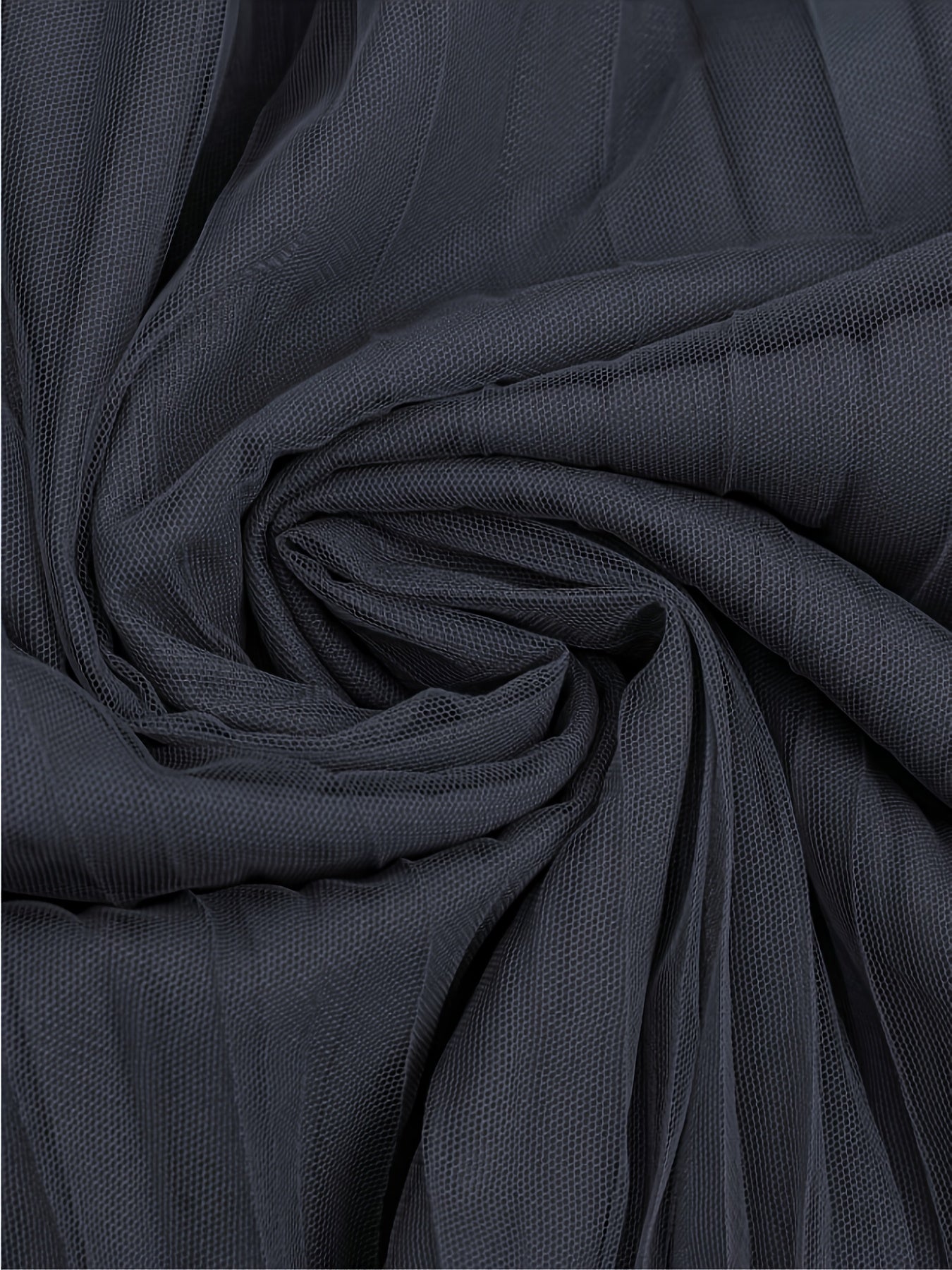 Women's Elegant Solid Color Double-Breasted Suit Jacket with Mesh Pleated Skirt Set, Spring/Summer Belt Not Included