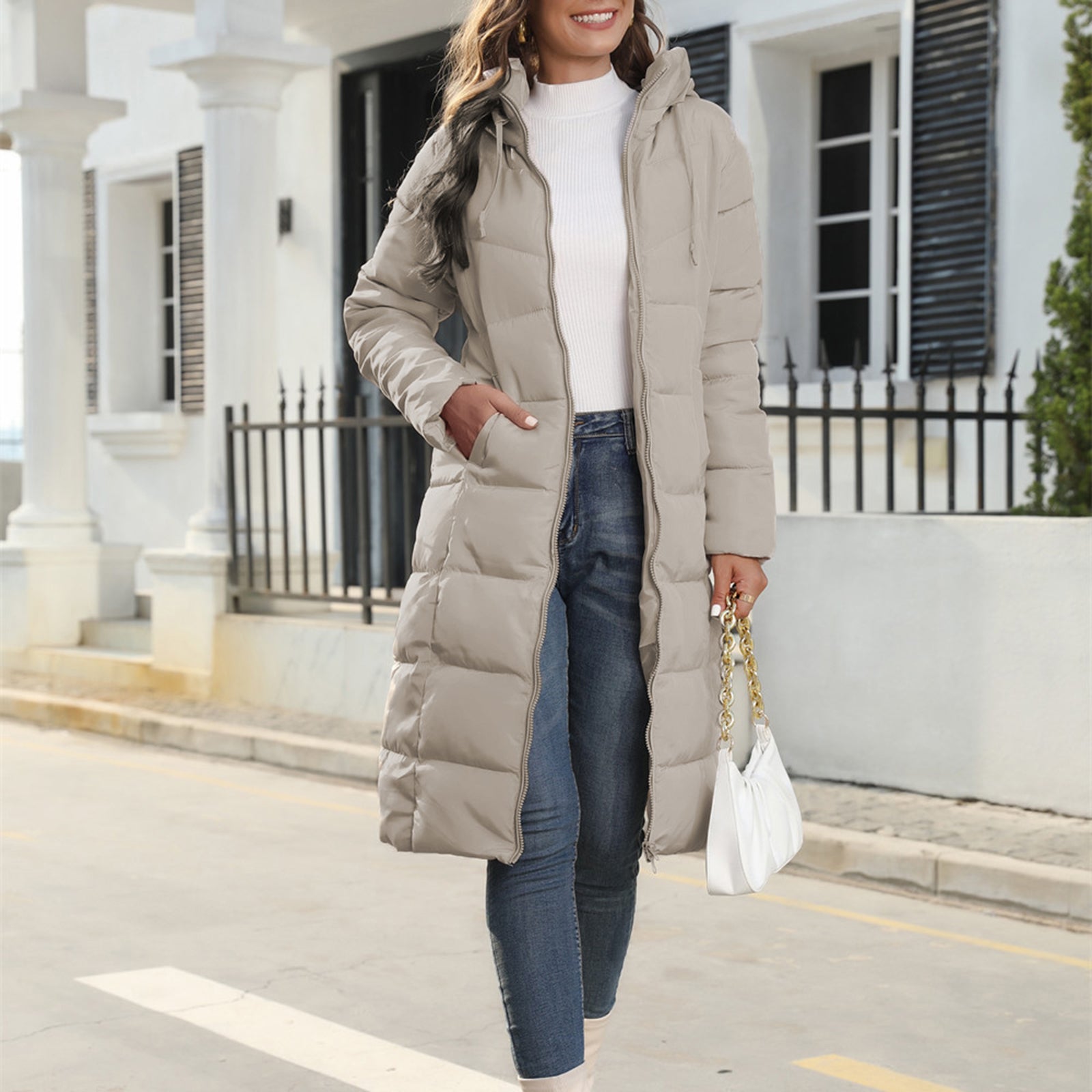 Women's Long Puffer Jacket Winter Warm Quilted Coat Long Sleeve Zip Up Outwear with Hood Casual Outfits Streetwear Autumn
