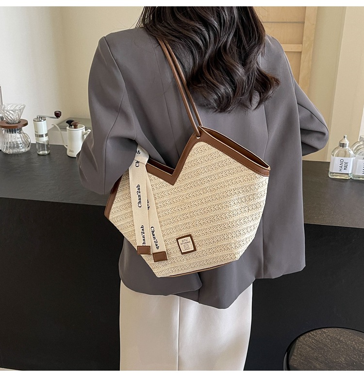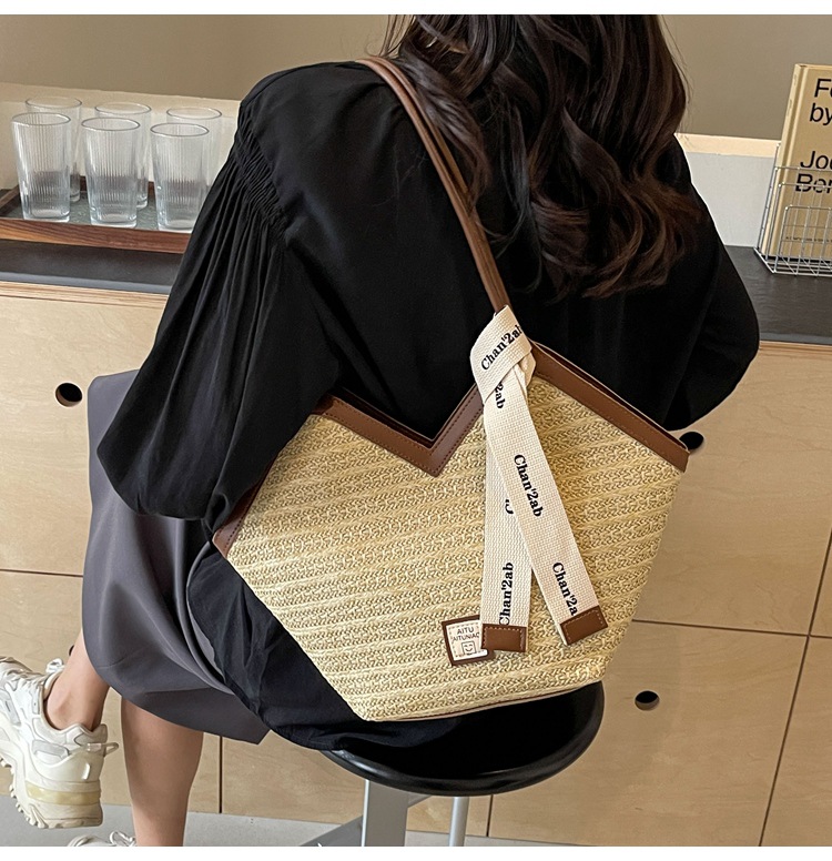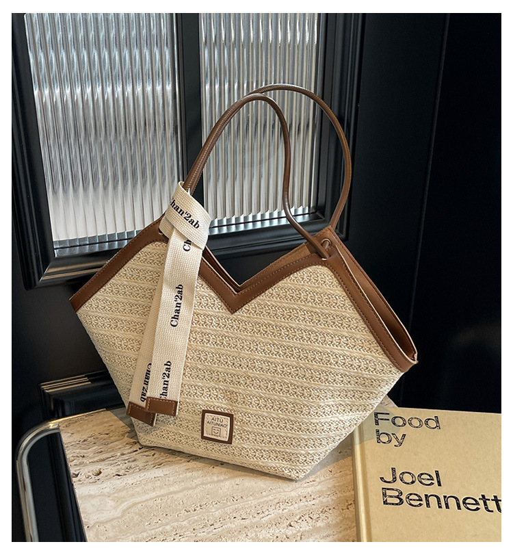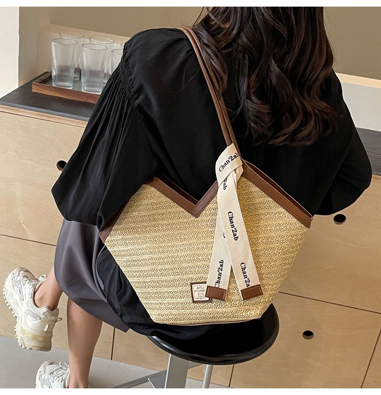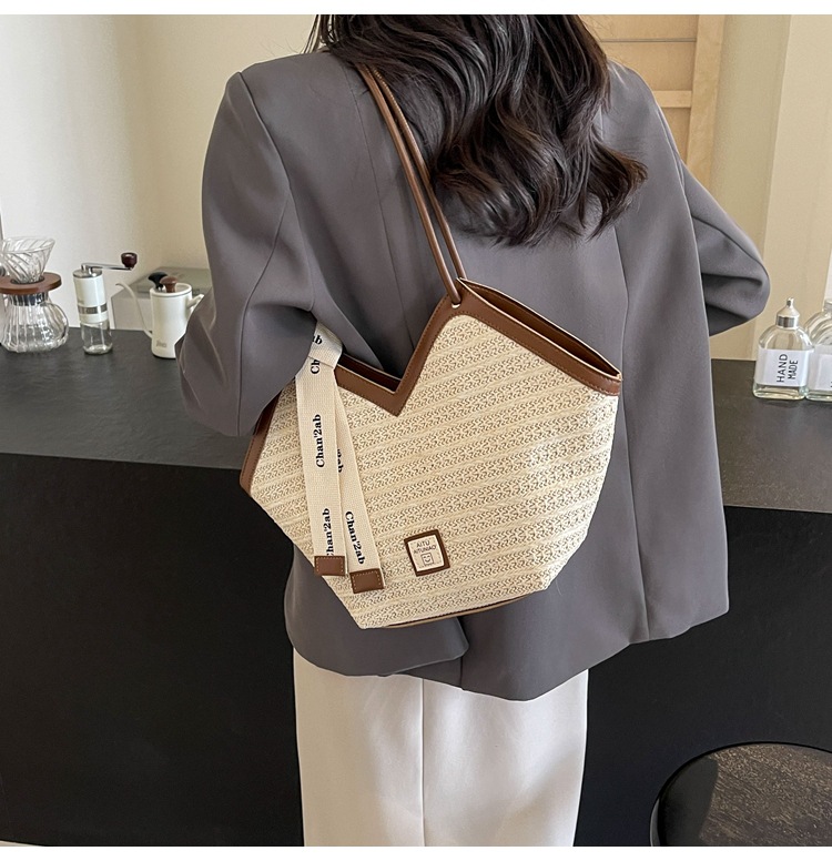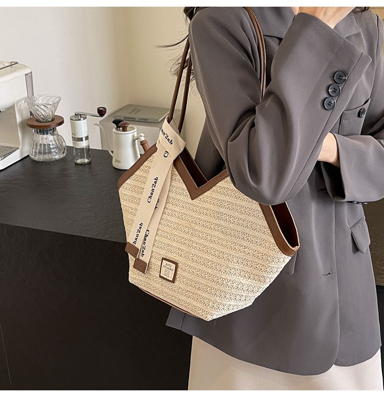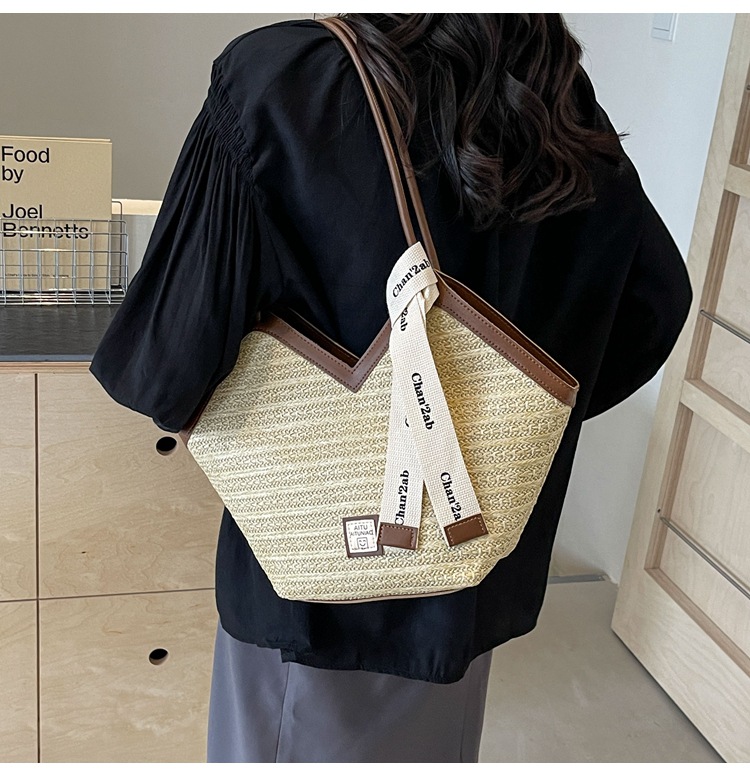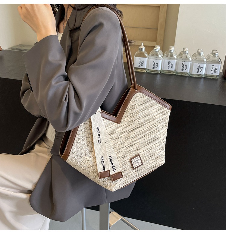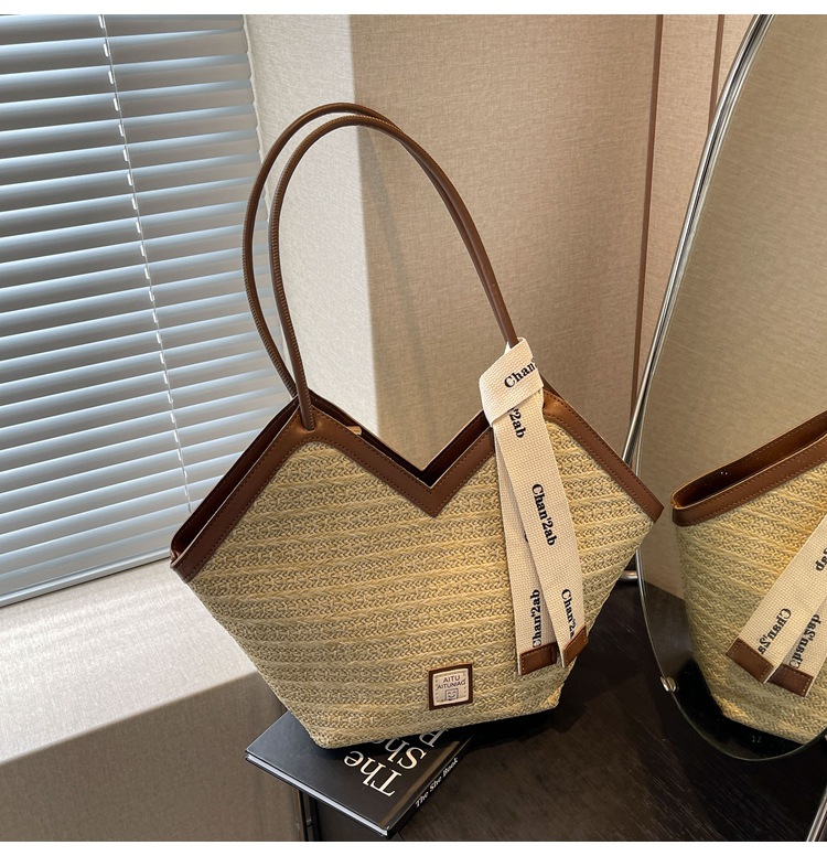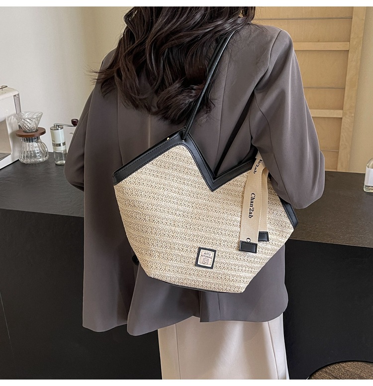 Woven Straw Woven Bag Women's Large Capacity 2025 New Arrival Easiest for Match Seaside Shoulder Bag Beach Vacation Commuter Tote