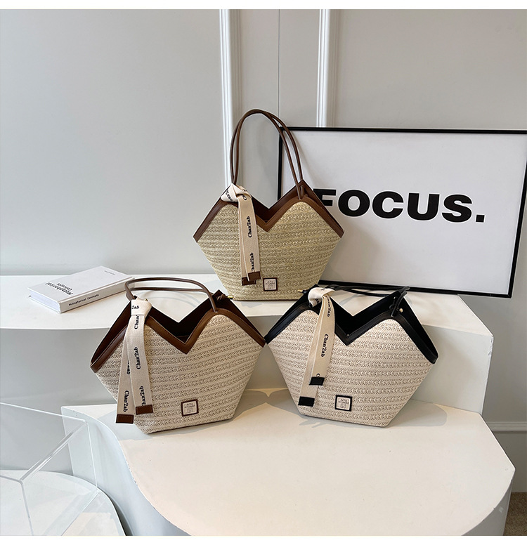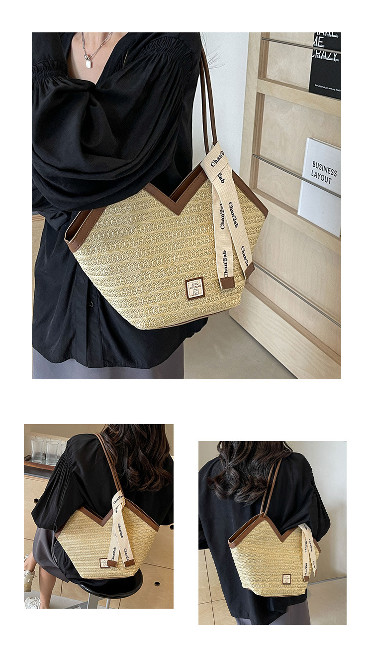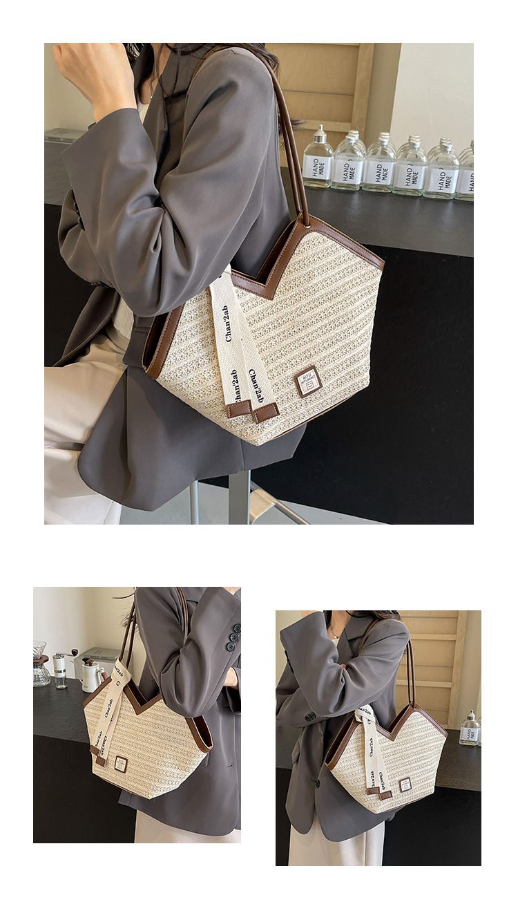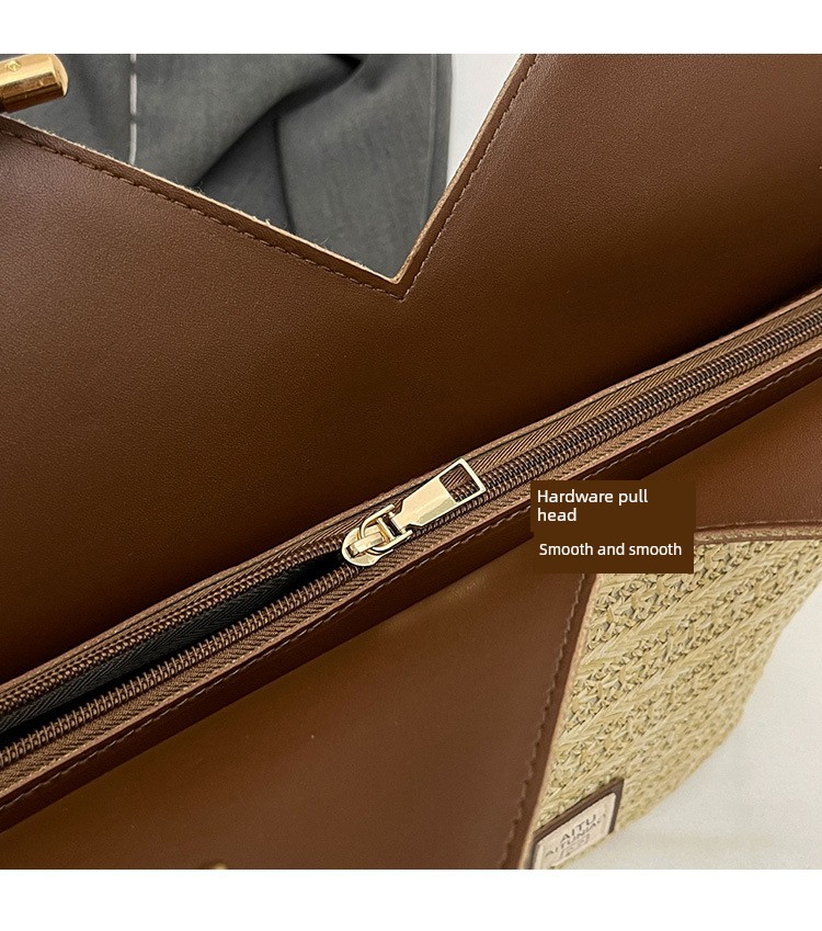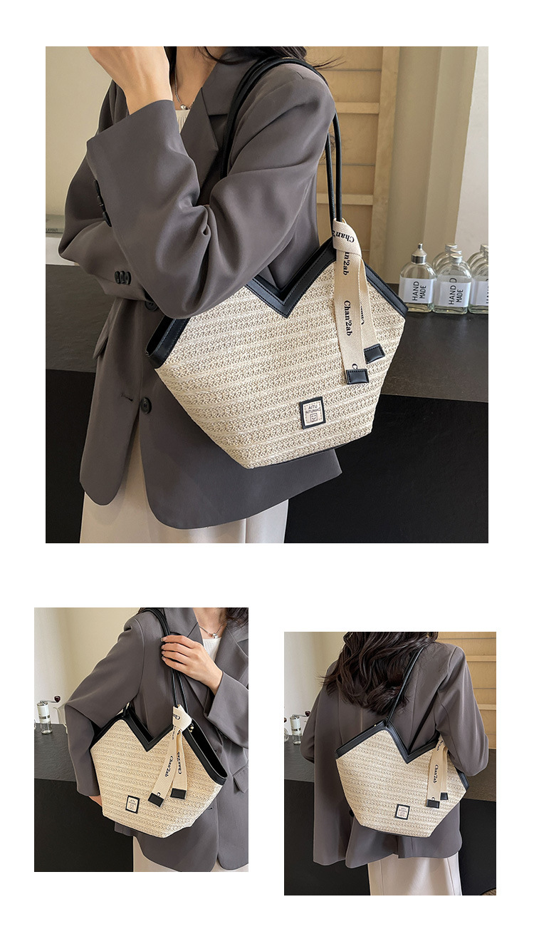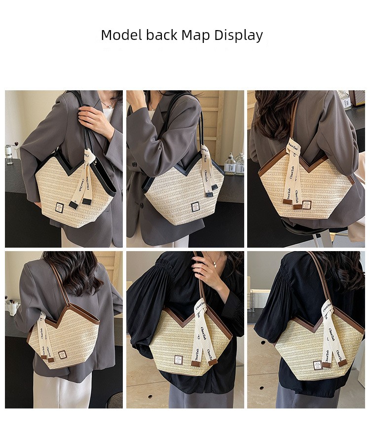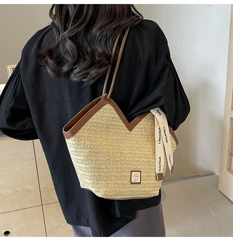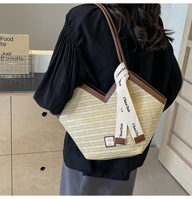 Woven Straw Woven Bag Women's Large Capacity 2025 New Arrival Easiest for Match Seaside Shoulder Bag Beach Vacation Commuter Tote