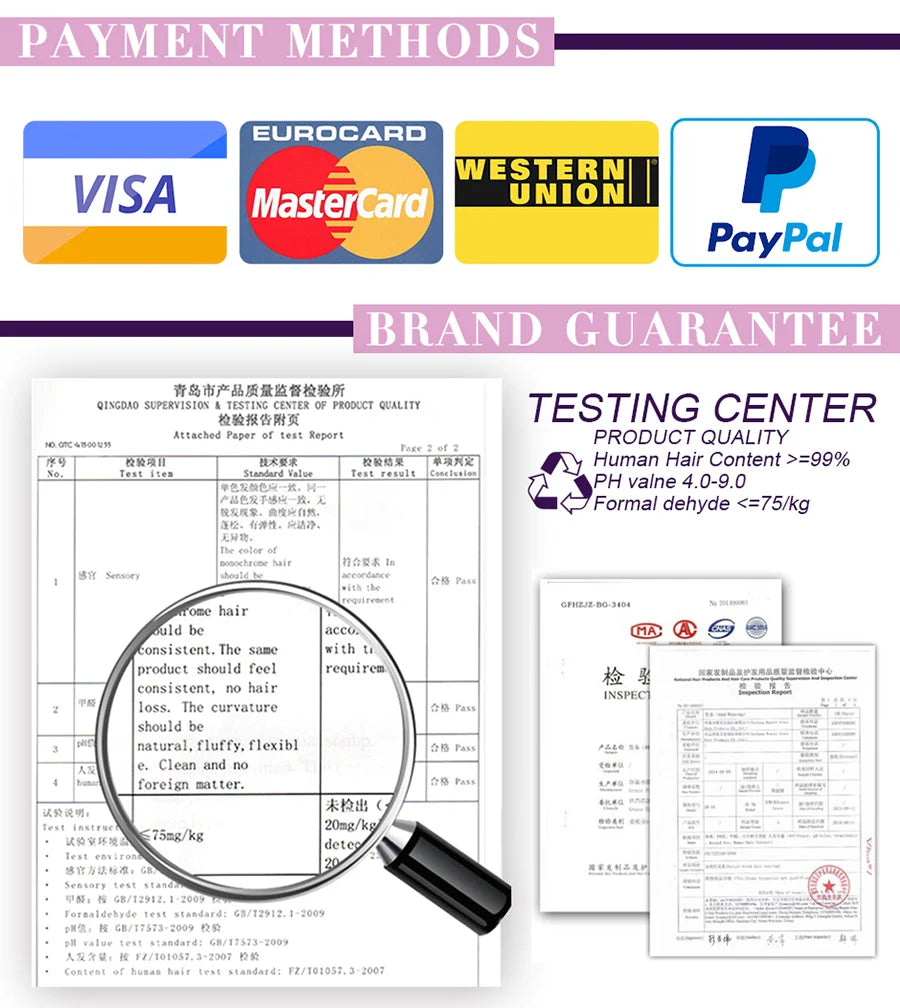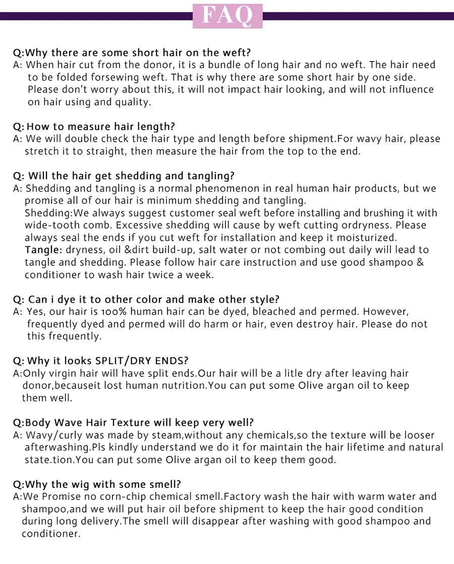 Hair Quality: 100% human hair with high quality, no shedding and tangle. Can be colored, curled and straighten.