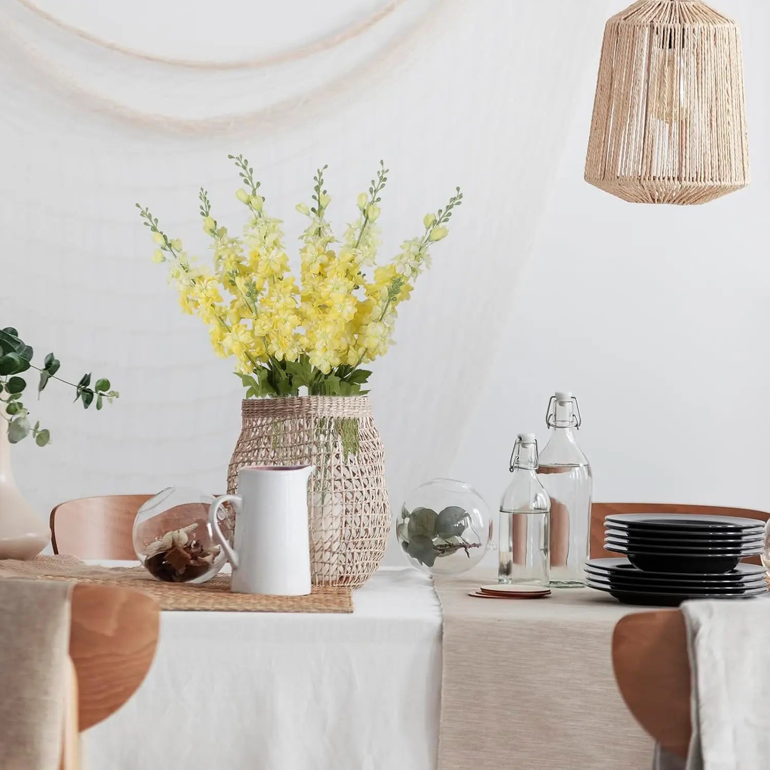 【Warm Tips】The long stem artificial flowers are bent for easier packaging, please straighten them by hands. They will easily return to original shape. Use a hair dryer to fluff all the flower petals and greenery, making them more vibrant.