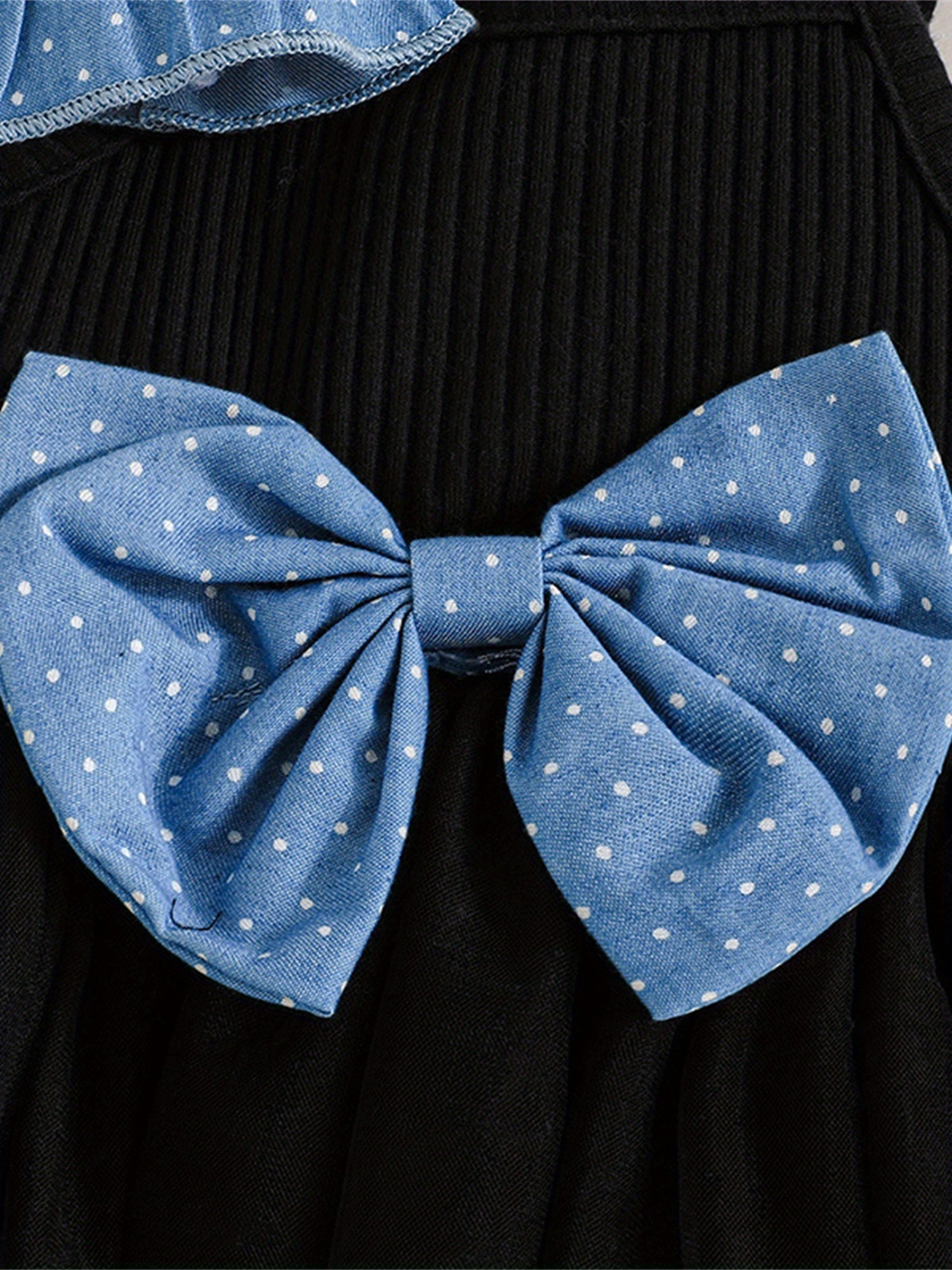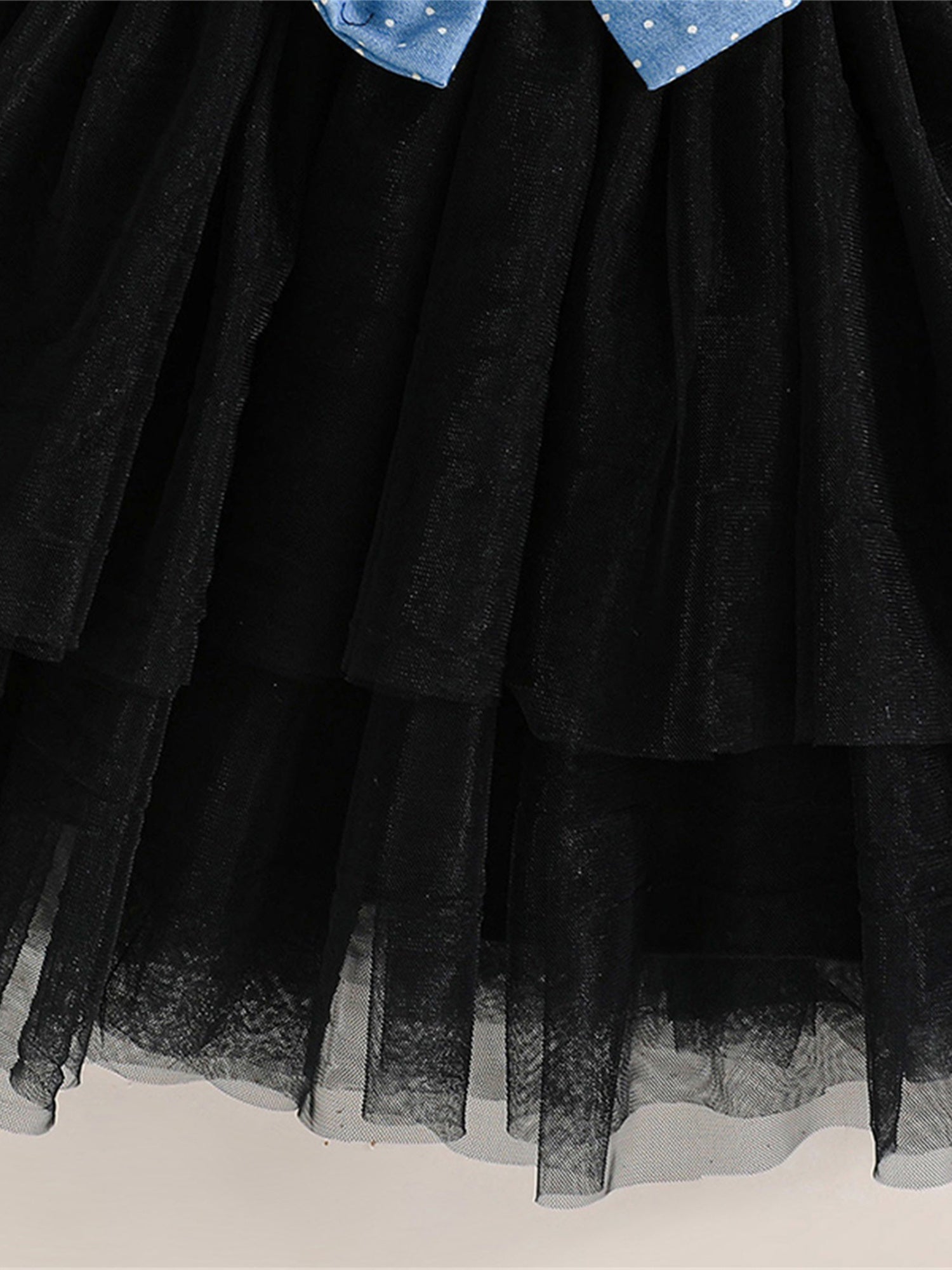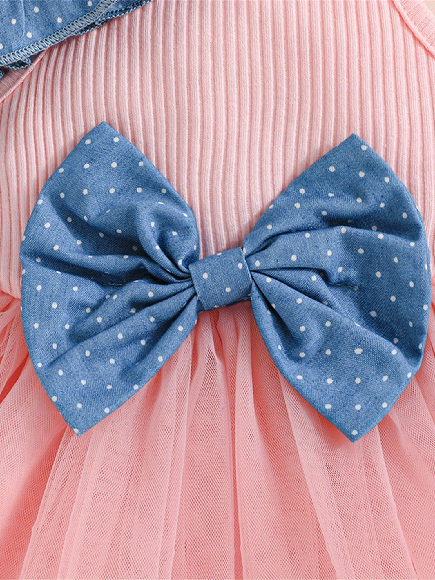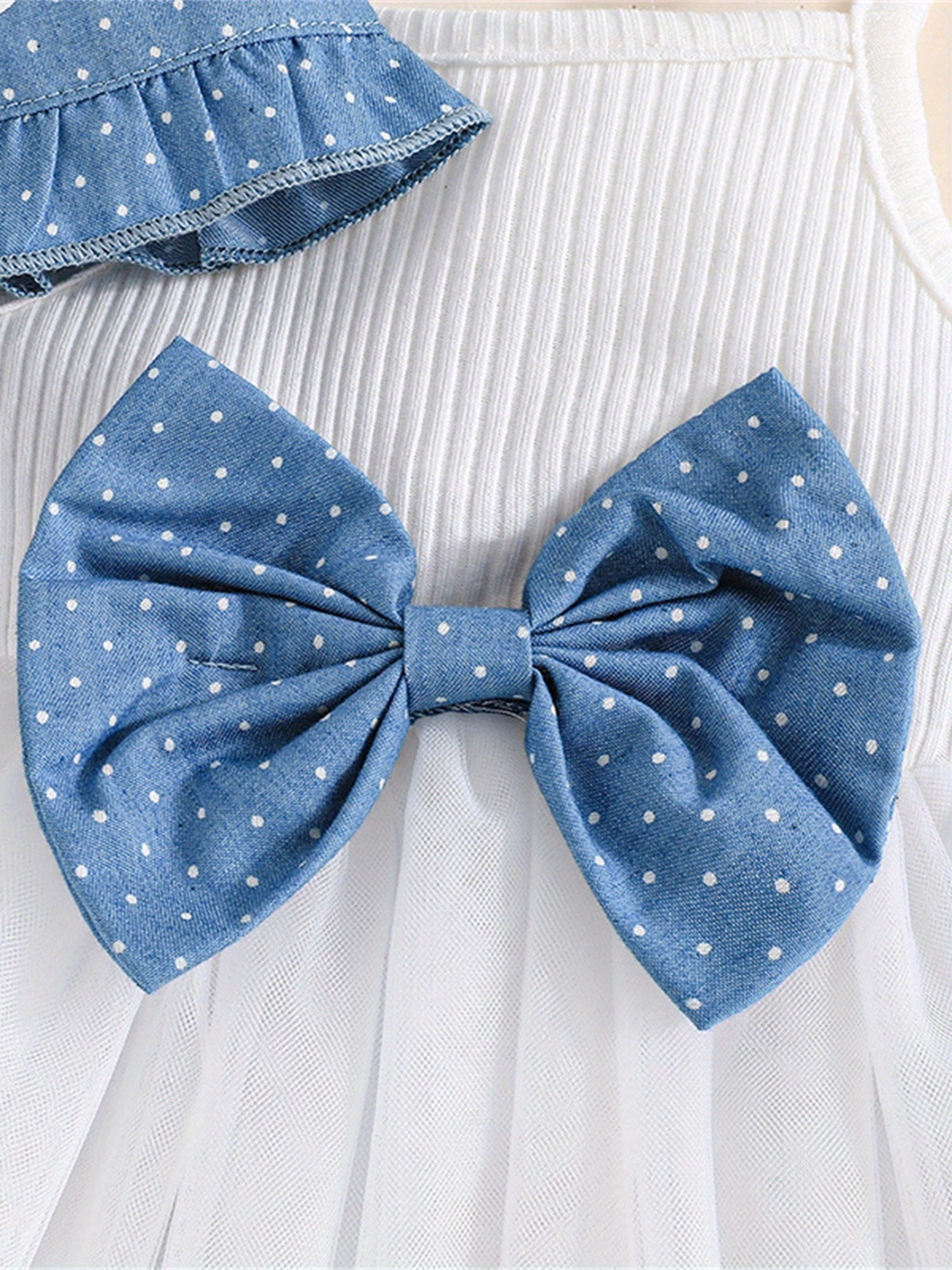 Youngsters Girl Summer Outfits Tulle Spaghetti Strap Bow A Line Dress with Dot Butterfly Print Short Puff Sleeve Cardigan, Perfect for Outdoor